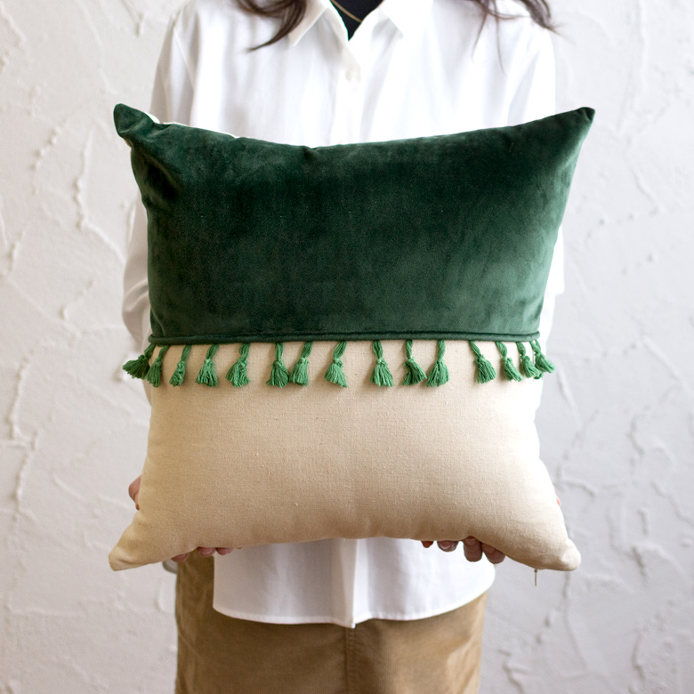 肌触りの良いベルベットと、ざっくりとしたリネンの珍しい組み合わせ。