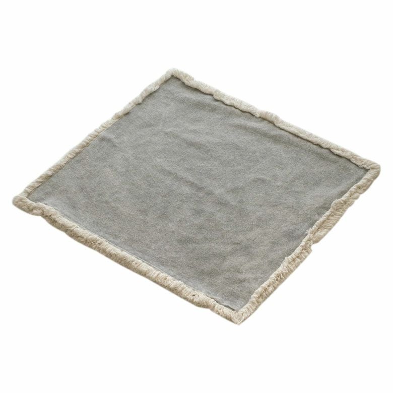 ユーズド感のあるような生地を使用し、ぐるっとフリンジで縁取りました。