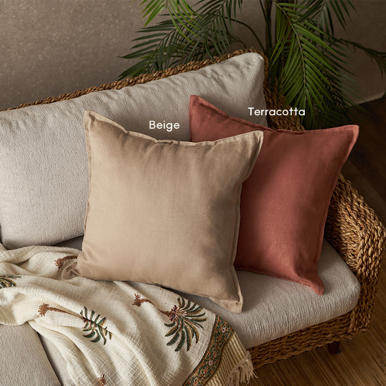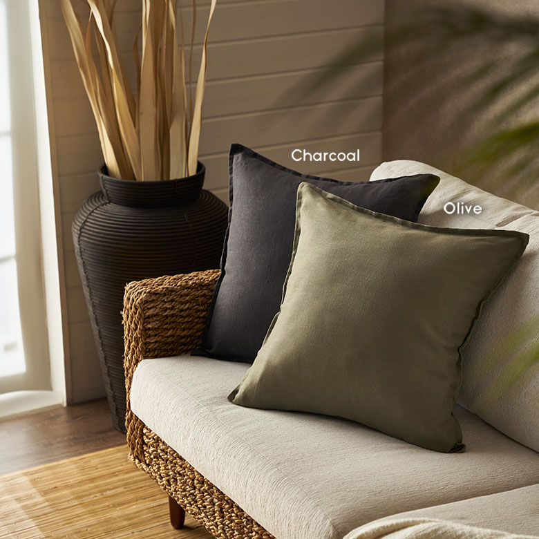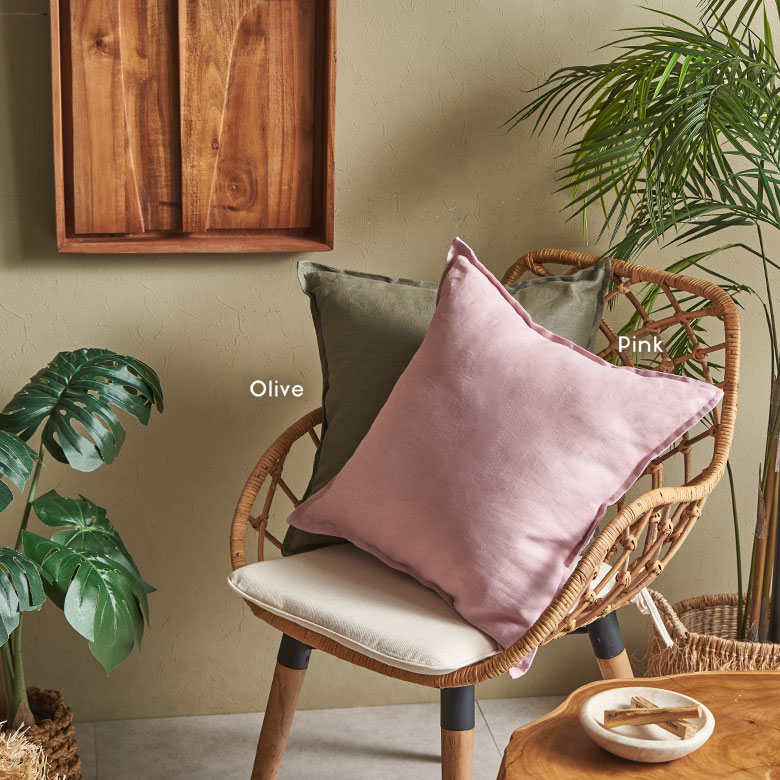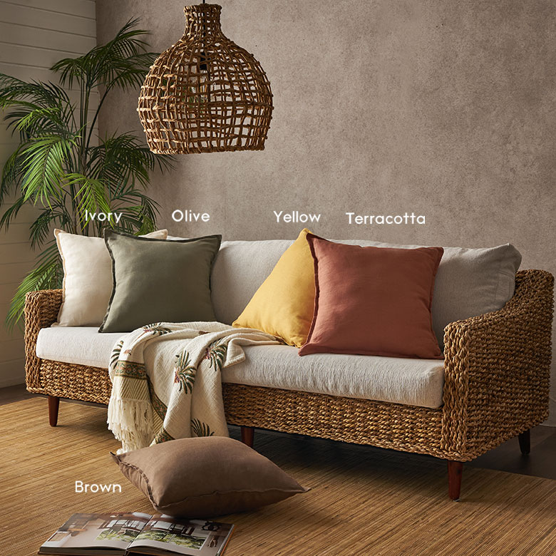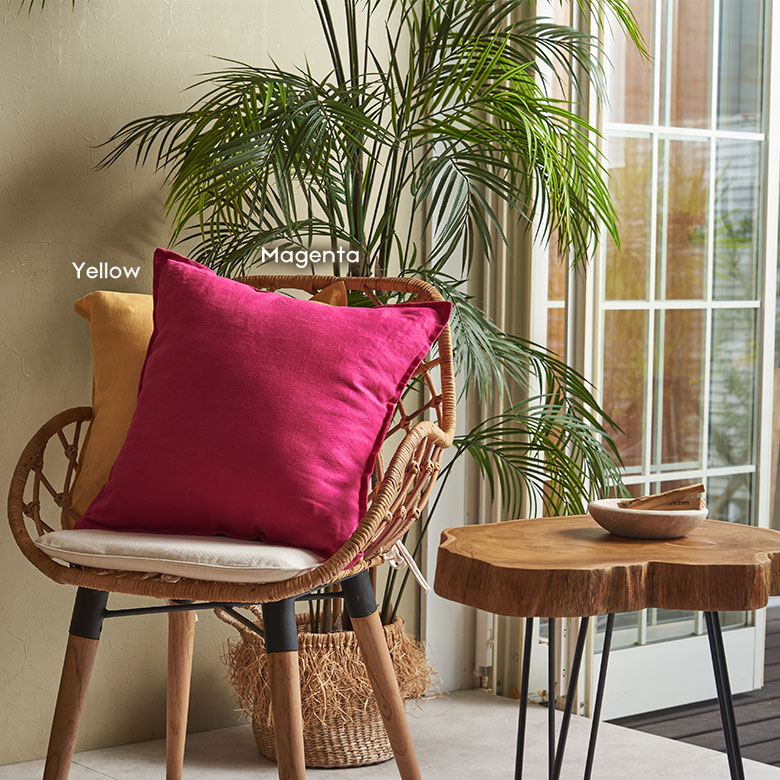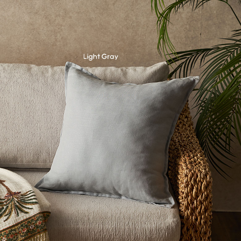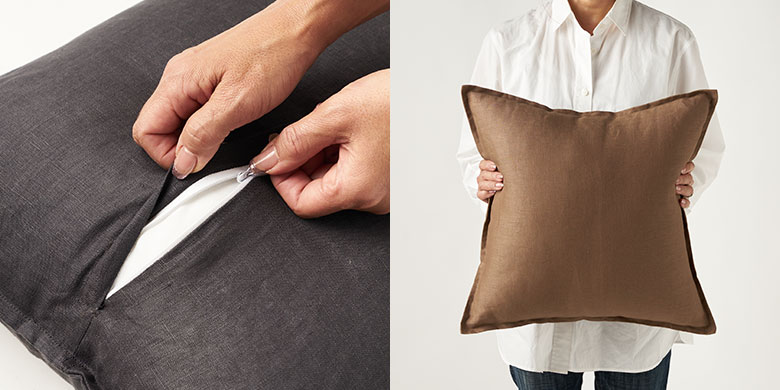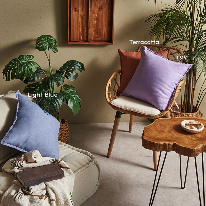 吸湿性・通気性に優れているため、春夏は蒸れにくく涼やか。さらに秋冬は繊維の間に空気を含むことで、自然な保温性を保つので一年を通してオールシーズンお使いいただけるクッションカバーです。