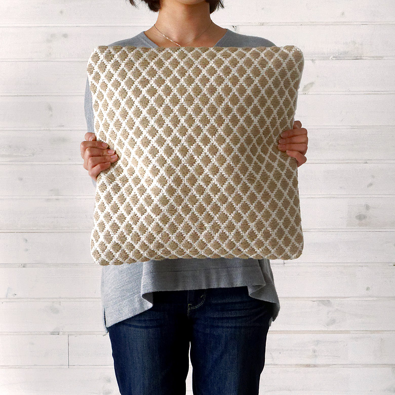 幾何学パターンクッション、ダイヤ柄45cm×45cm