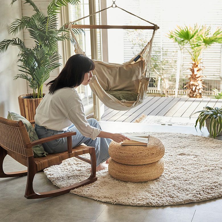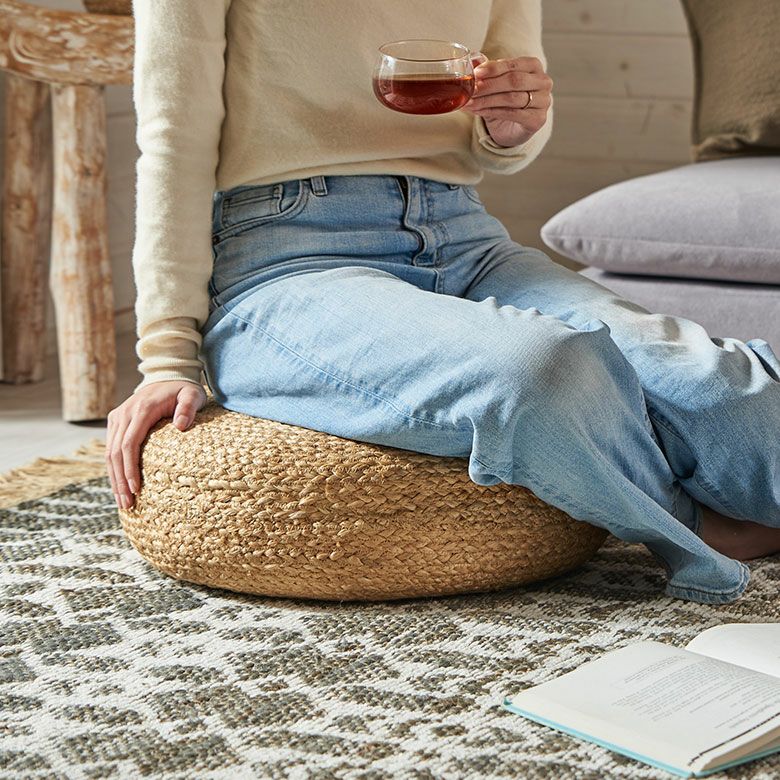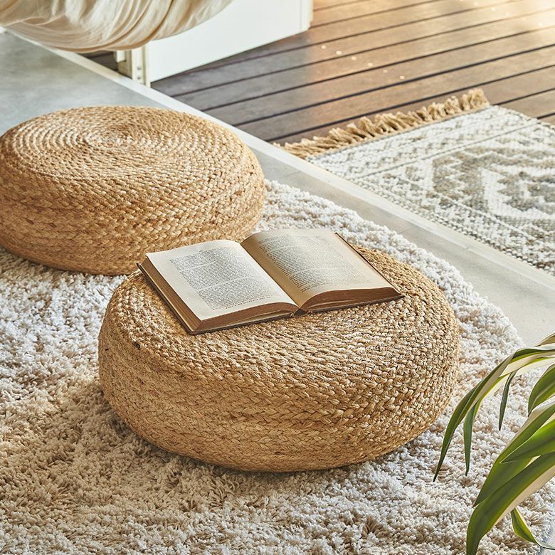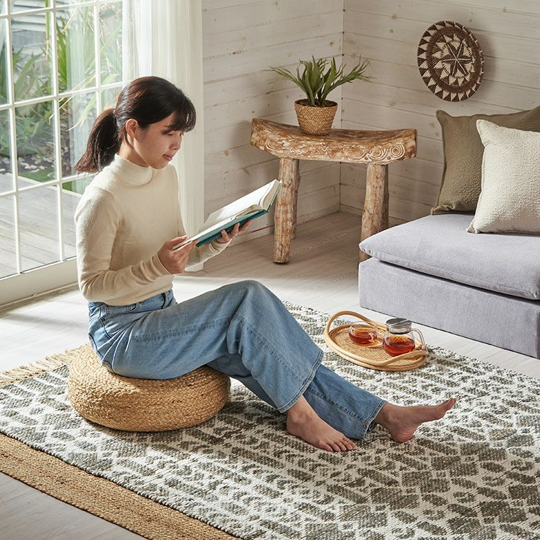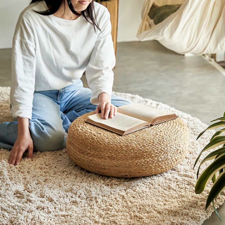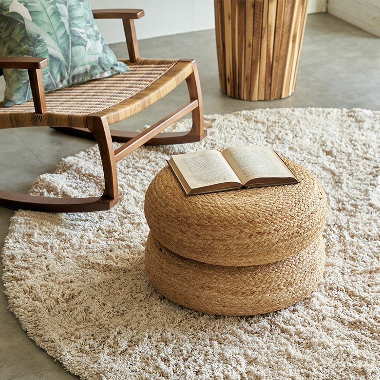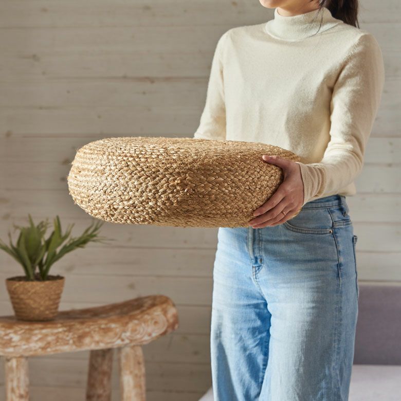 海外リゾートライクなインテリアを彷彿とさせる、ジュートのフロアクッション。