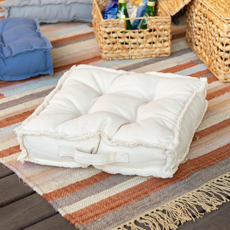 シートクッション オールシーズン リビング インテリア フリンジ フロアクッション クッション スクエア 正方形 四角 キャンバス地 約 W 42cm D 42cm H 10cm [70114]【 キャンプ アウトドア ピクニック レジャー 座布団 座椅子 厚手 厚い シンプル 無地 フロアクッション クッキークッション おしゃれ 北欧 リゾート バリ アジアン 雑貨 】