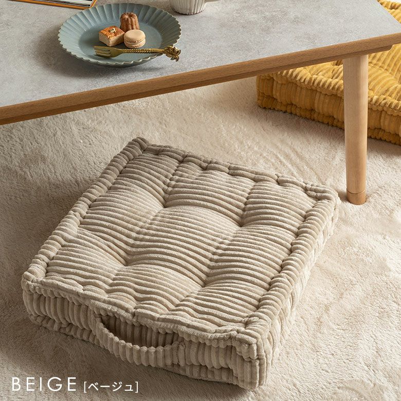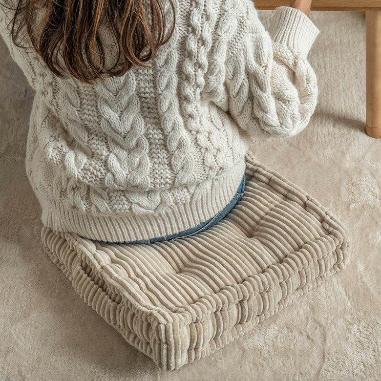 当店ロングセラーのコーデュロイシリーズから、厚さ10cmの極厚スクエアクッションが新登場!可愛らしいクッキーのようなデザインと、柔らかなコーデュロイ生地が特長。ふんわりとした厚みのある中わたが体を優しく支え、床に座っても底つき感のない、快適な座り心地を実現しました。リビングやこたつ、ダイニング、アウトドアなど、様々なシーンで活躍します。