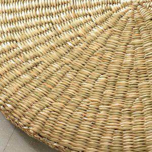 シーグラス(天然水草)で編まれた円形の座布団。ざっくりとした編み目でナチュラルな質感。 |