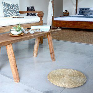 シーグラス(天然水草)で編まれた円形の座布団。シーグラスはそのざっくりとした編み目と通気性のよい涼しげな