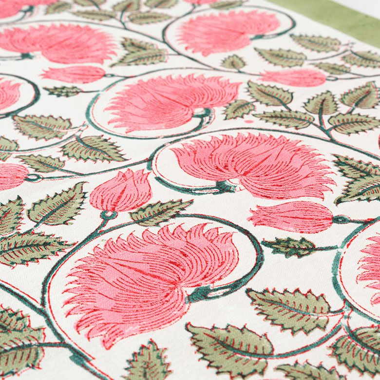 インドならではの色使いと、「ブロックプリント」で描かれた