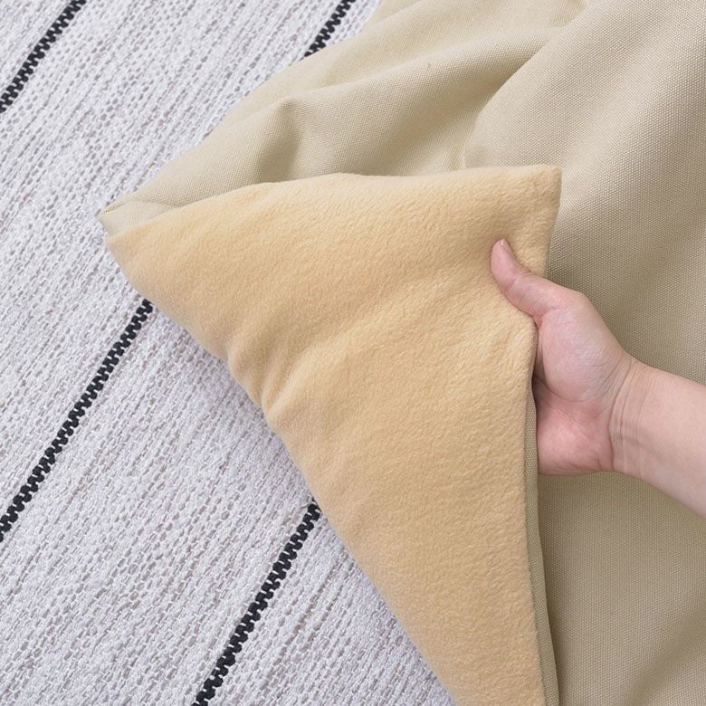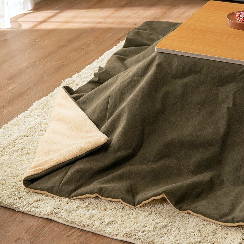 こたつ布団ではあまりない素材で、カジュアルな雰囲気。