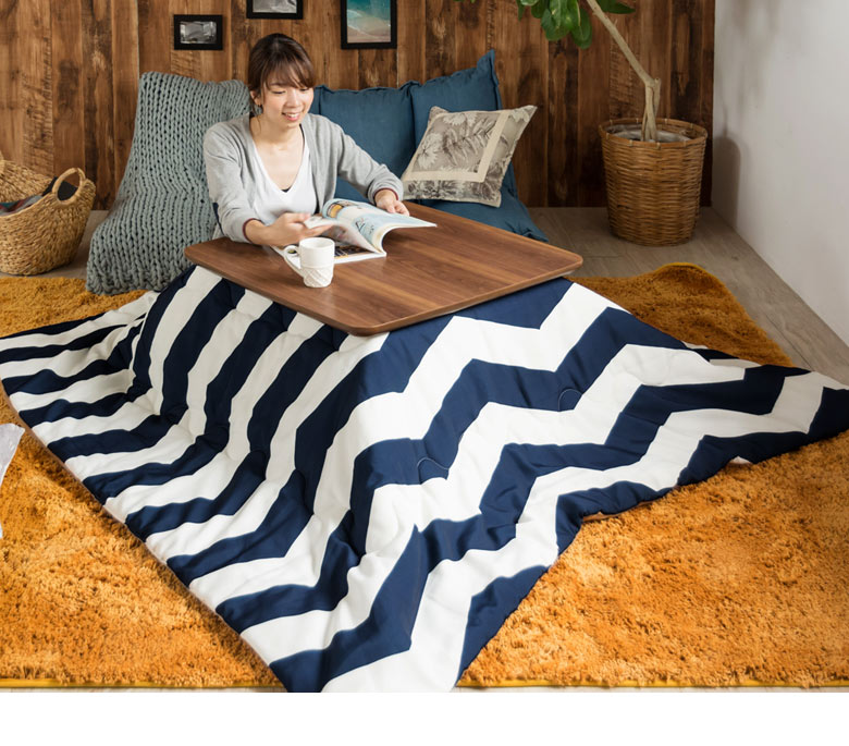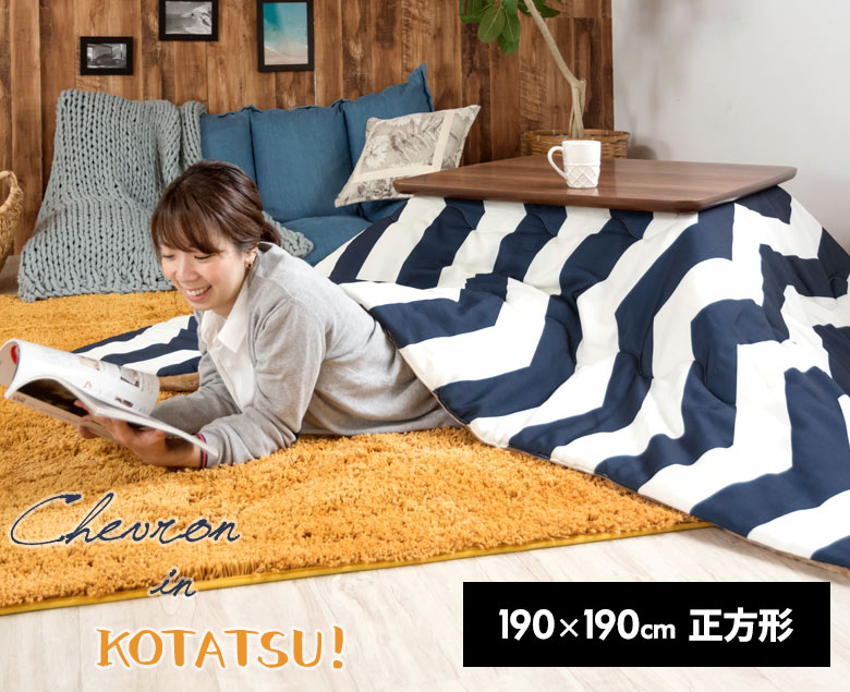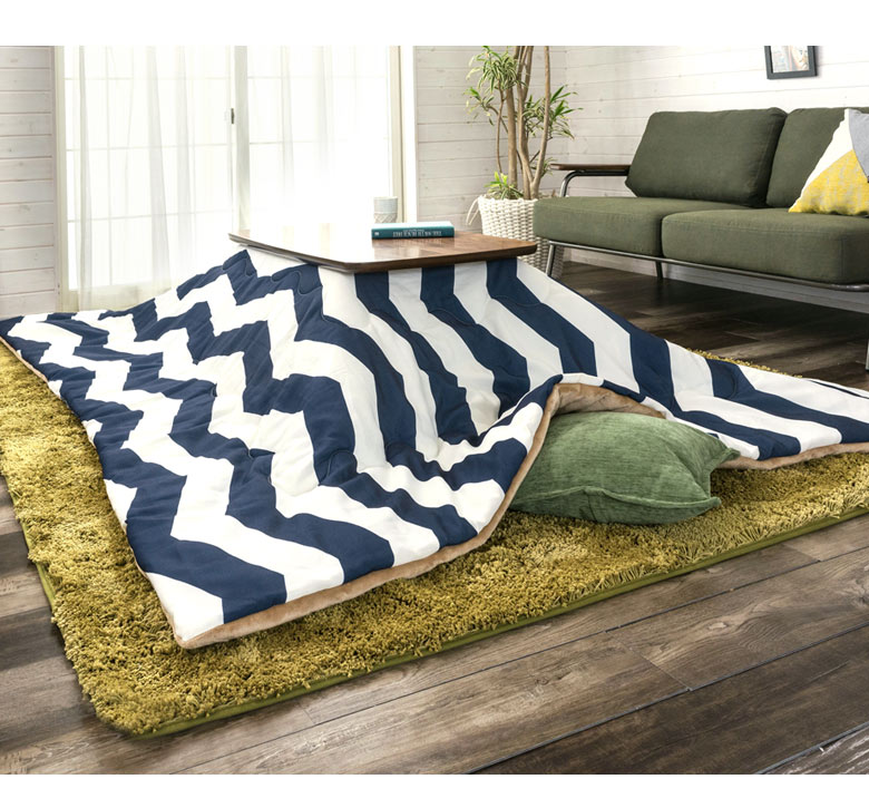高いデザイン性で人気のシェブロン柄をこたつ布団に。