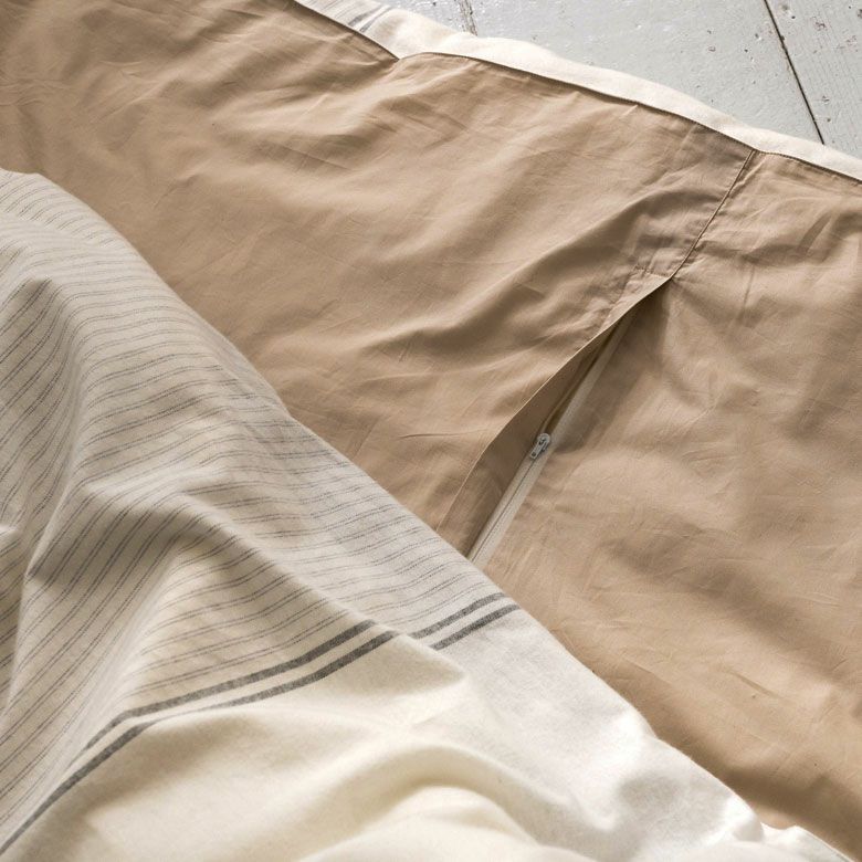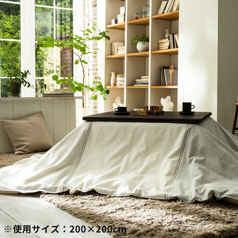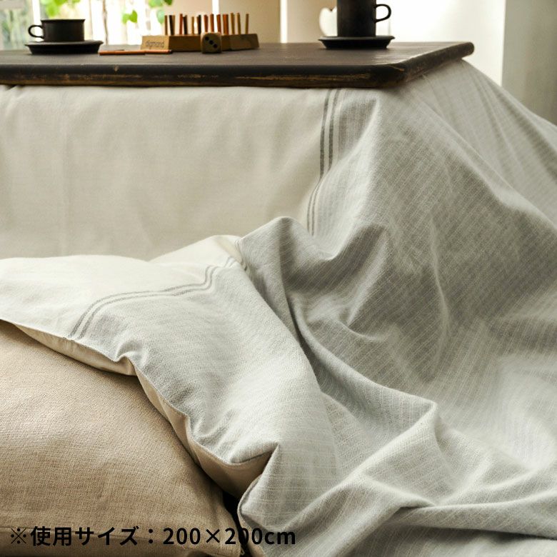 先染めのシンプルなボーダー柄とソフトな色合いでどんなインテリアとも合わせやすい。