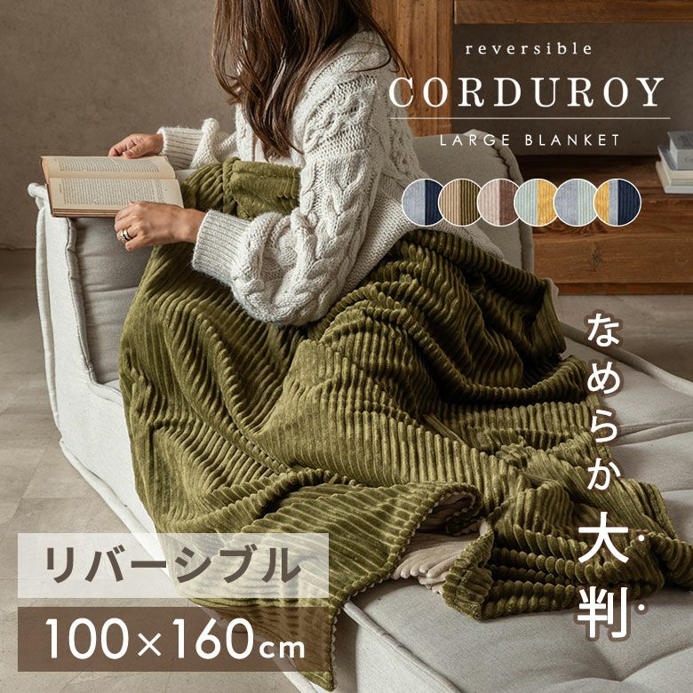 当店ロングセラーのコーデュロイシリーズから、2枚合わせで仕立てた大判リバーシブルブランケットが新登場!長さ160cmで足先までをすっぽり包み込み、まるで毛布のような温かさ。掛け布団のようにも使える大きさです。