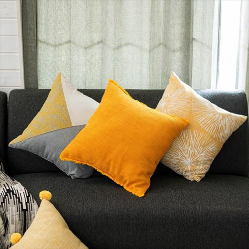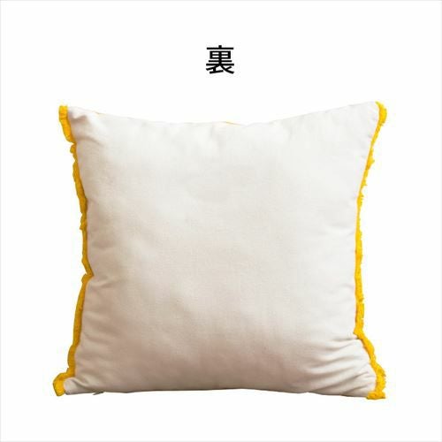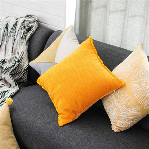 インテリアのアクセントになるビタミンカラーのクッションカバー。 【メール便対応】フリンジ付き リネンキャンバス クッションカバー 45×45cm イエロー(66557)【クッション カバー 北欧 おしゃれ 正方形 45角 四角 リネン 腰あて ピロークッション 海外 ファブリック プレゼント おしゃれ メール便 模様替え ジャガード調】