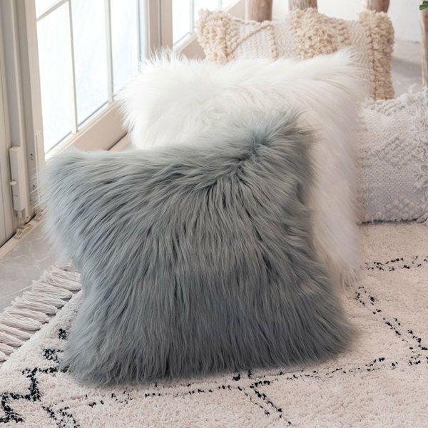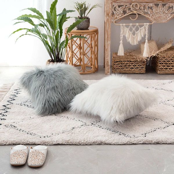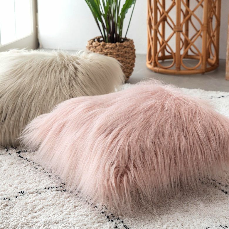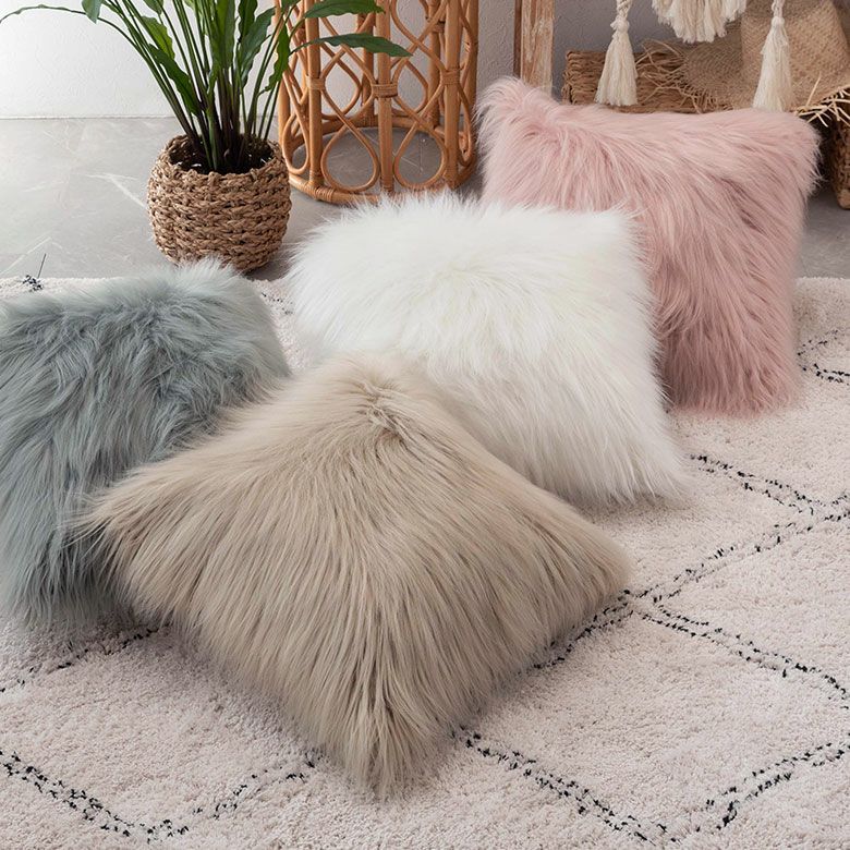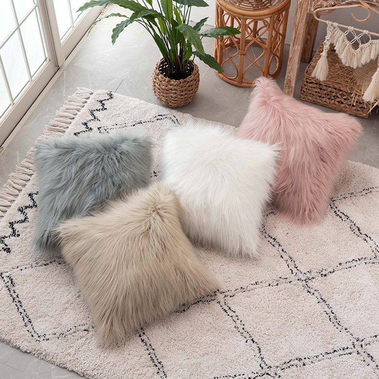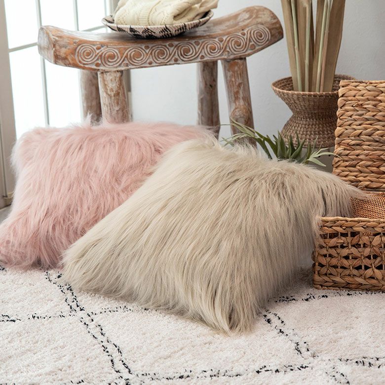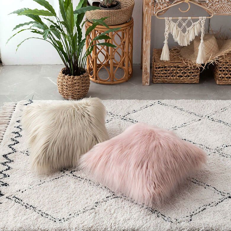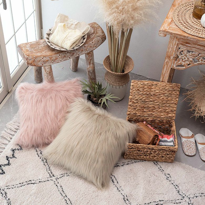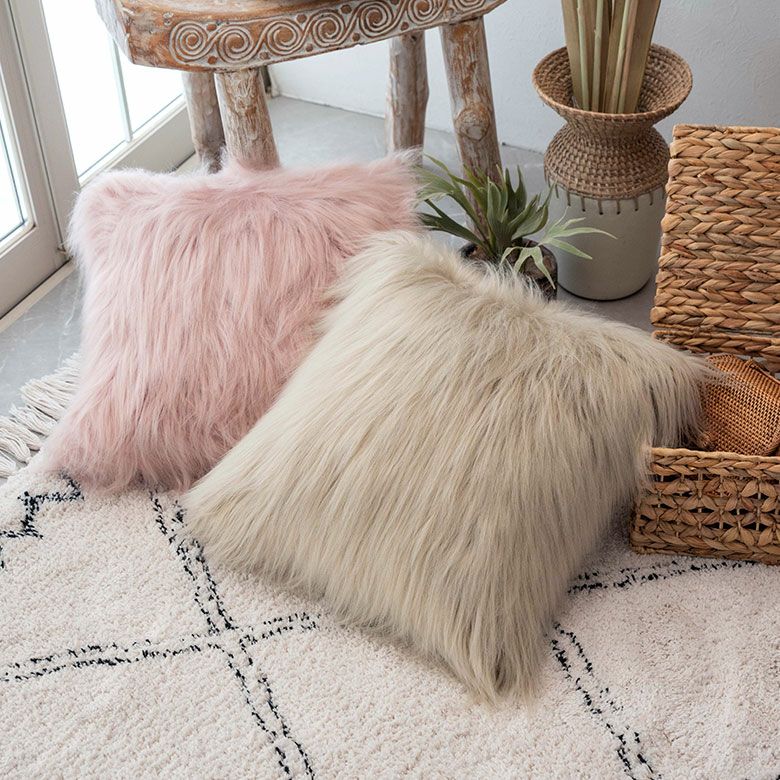 クッション クッションカバー ロングファー ピンク ファー クッションカバー フェイクファー ピンク ベージュ 約45×45cm 正方形 [66920 66921]【 ファークッションカバー ロングファー ふわふわ もこもこ おしゃれ 可愛い 北欧 ガーリー シャビーシック アジアン雑貨 アジアン 雑貨 店舗用 サロン 】