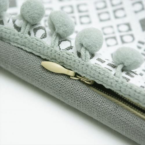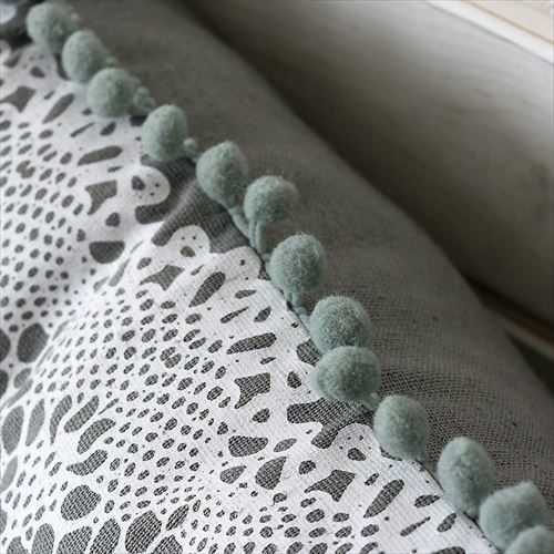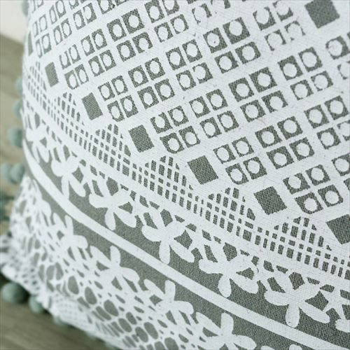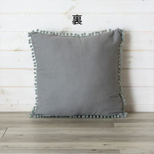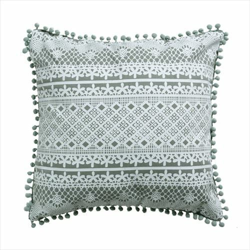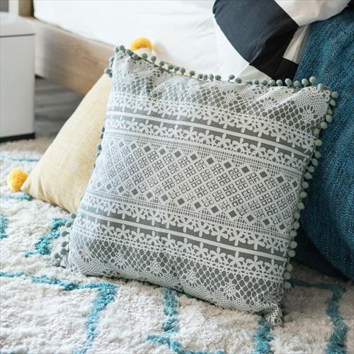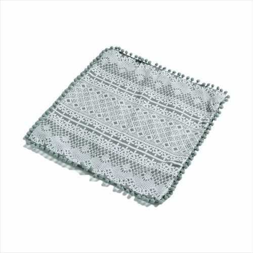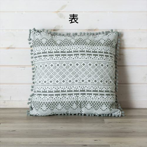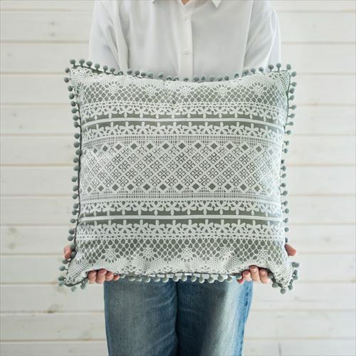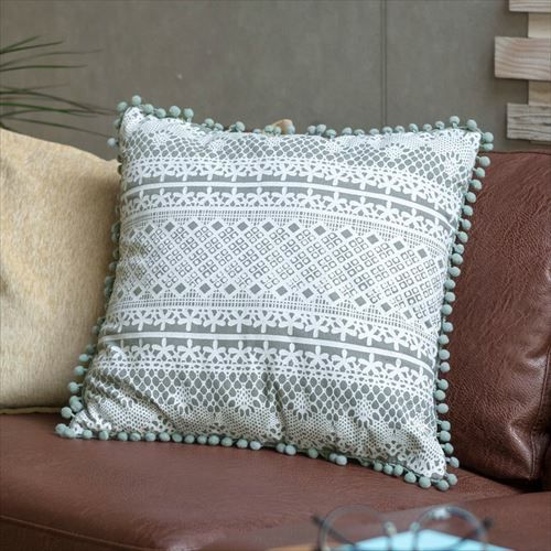 クッション クッションカバー レース柄 シャビ― アジアン雑貨 【メール便対応】 クッションカバー ミニポンポン付き レース柄プリント グレー 約45×45cm 正方形 [66574]【 ソファークッション ベッドクッション 45角 ガーリー シャビーシック おしゃれ 可愛い 北欧 プレゼント ギフト アジアン雑貨 アジアン 雑貨 】