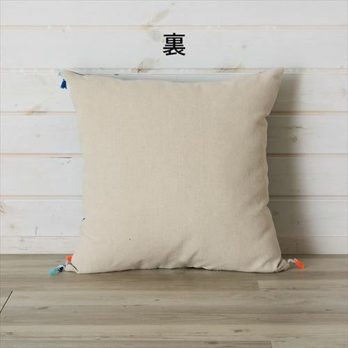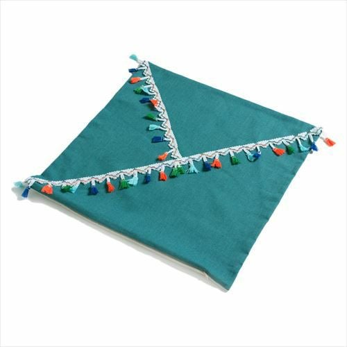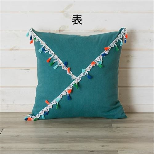 クッション クッションカバー レース柄 シャビ― アジアン雑貨クッション クッションカバー 青 フリンジ付き アジアン雑貨 【メール便対応】 クッションカバー カラフルなフリンジテープ付き ブルー 約45×45cm 正方形 [66541]【 ソファークッション ベッドクッション 45角 タッセル おしゃれ 可愛い 北欧 プレゼント ギフト アジアン雑貨 アジアン 雑貨 】