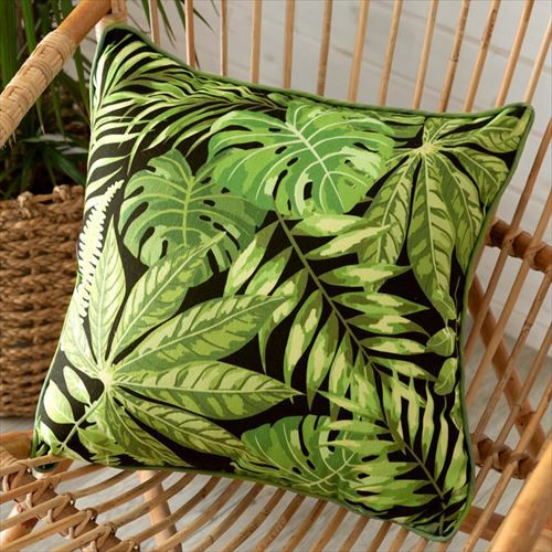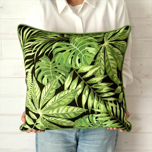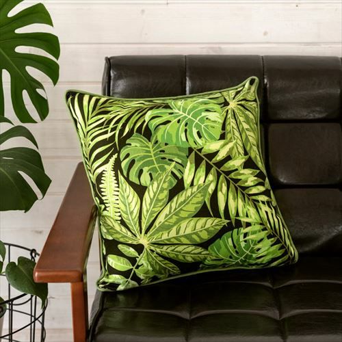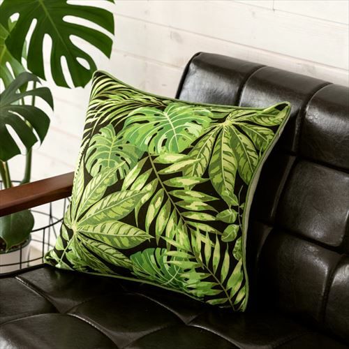 クッションカバー パームリーフ リーフ柄 ボタニカル グリーン 【メール便対応】リーフ柄 クッションカバー ブラック 45×45cm [66551]【 ソファークッション ベッドクッション リーフ柄 ボタニカル 緑 黒 ヤシの木 45角 おしゃれ 北欧 アジアン雑貨 アジアン 雑貨 リゾート バリ島 ハワイ 】