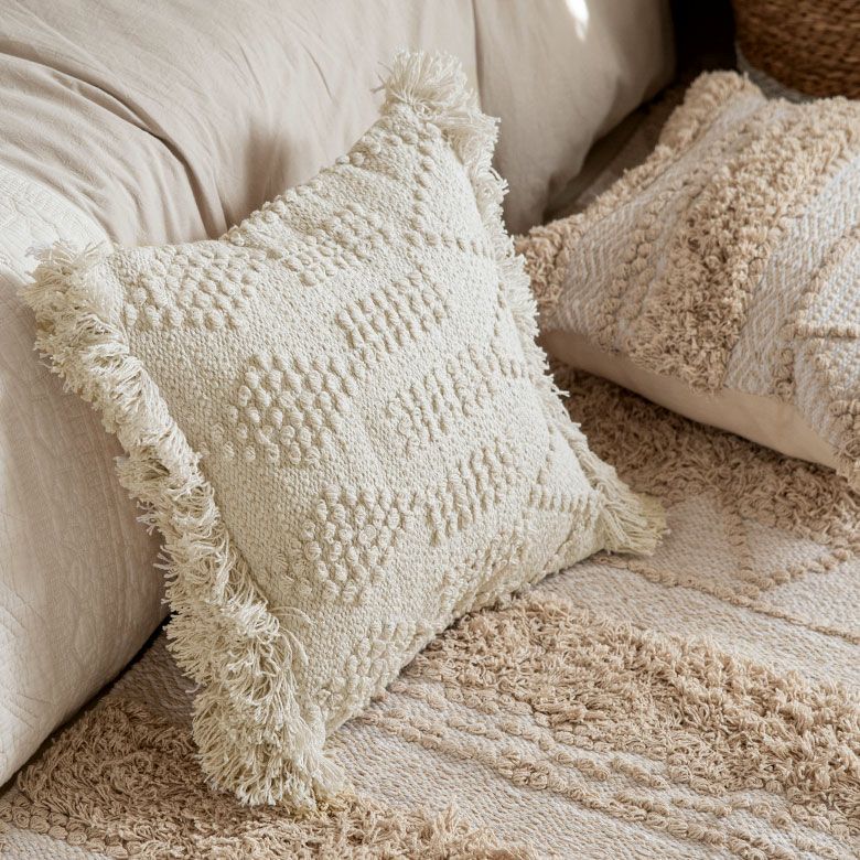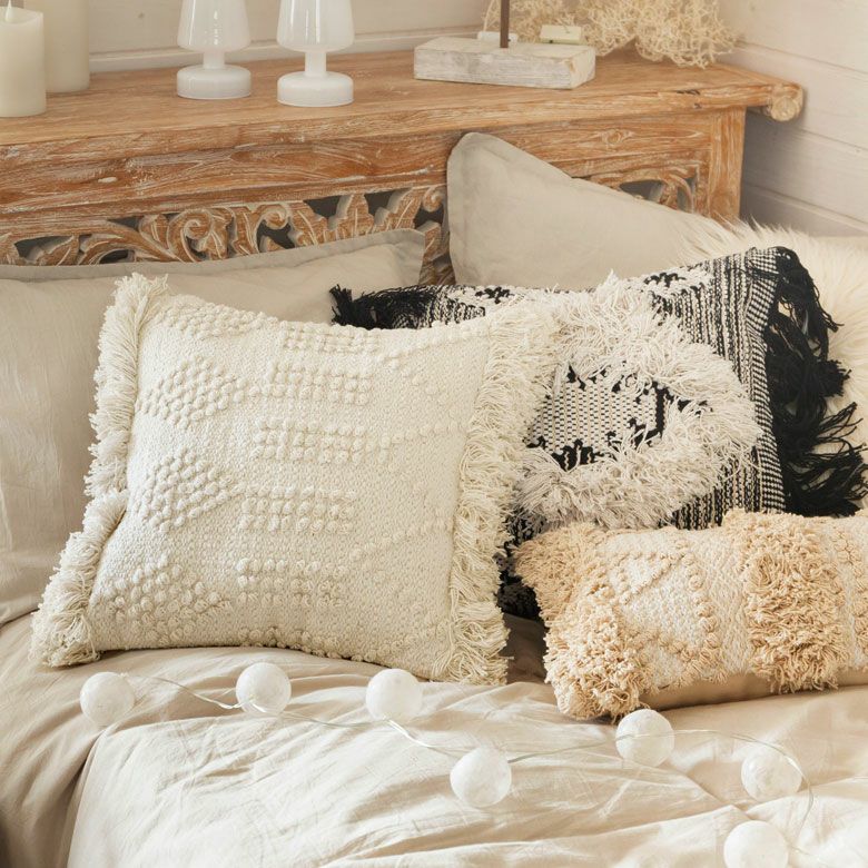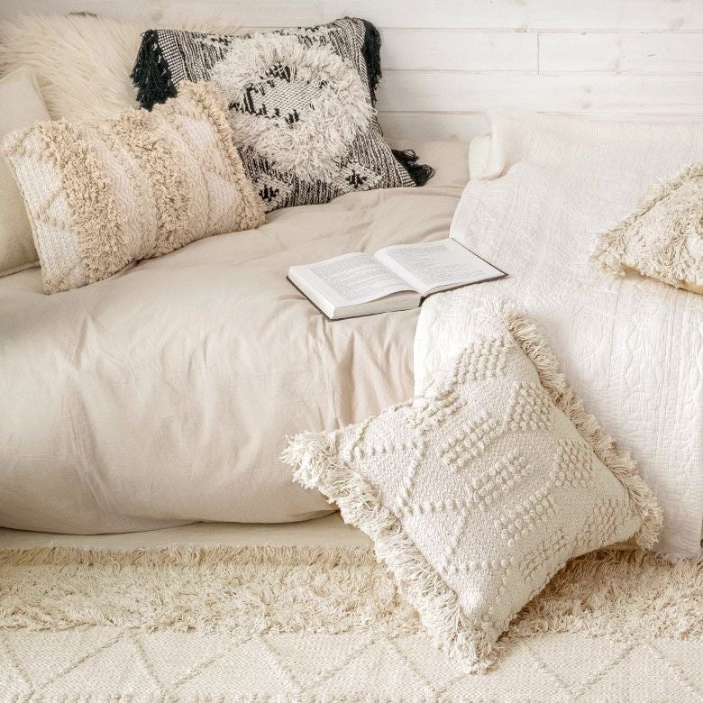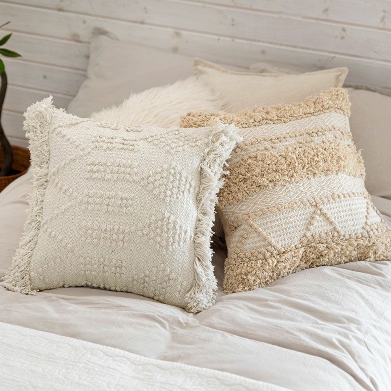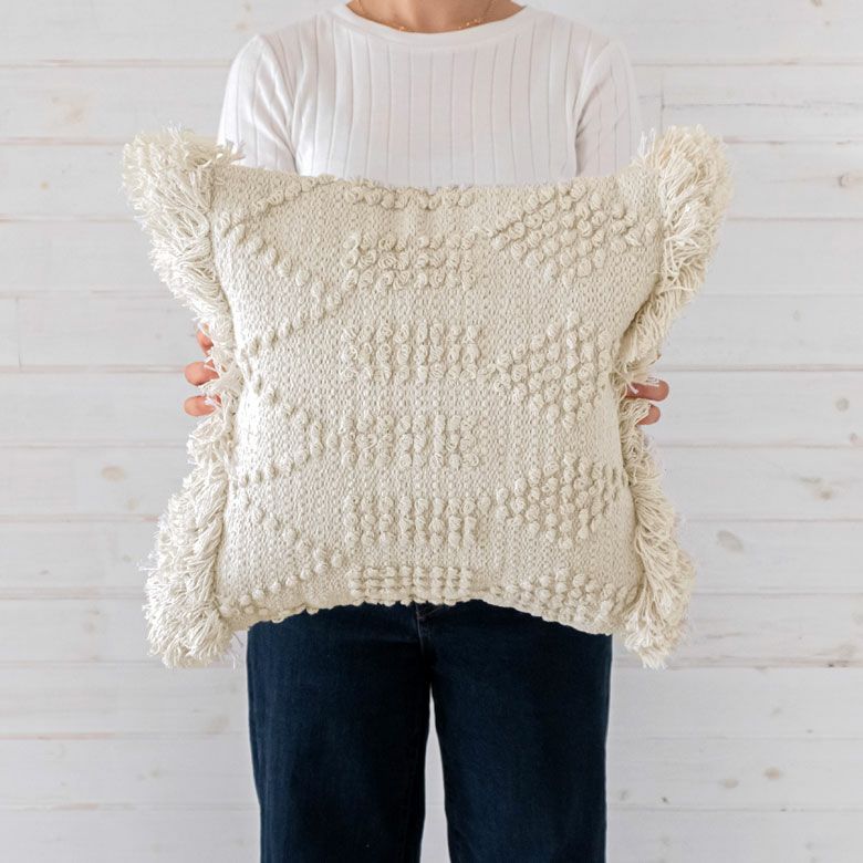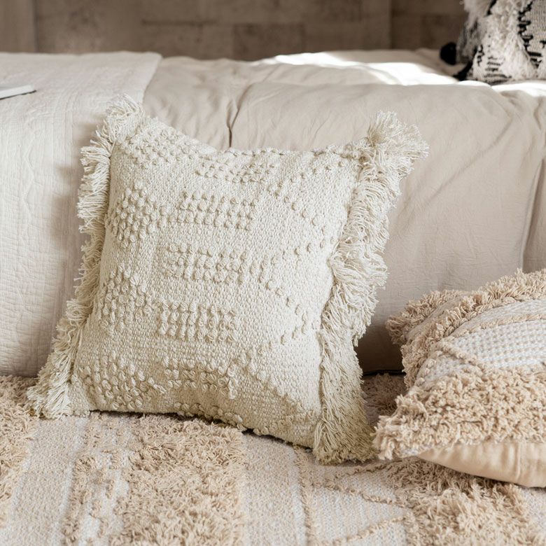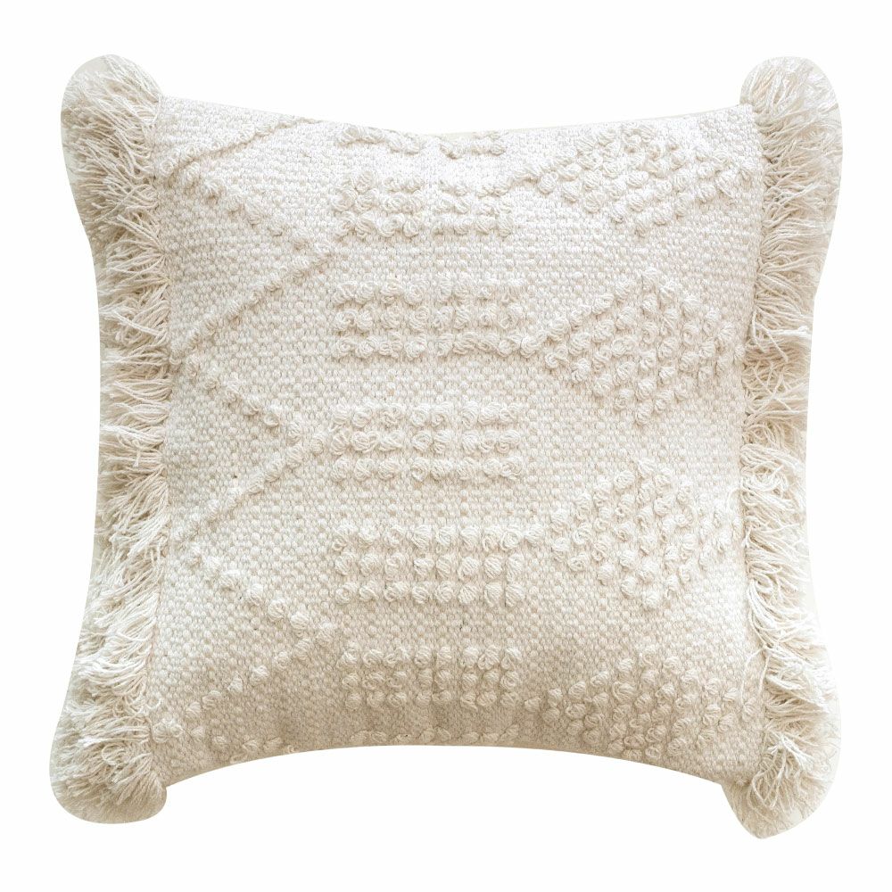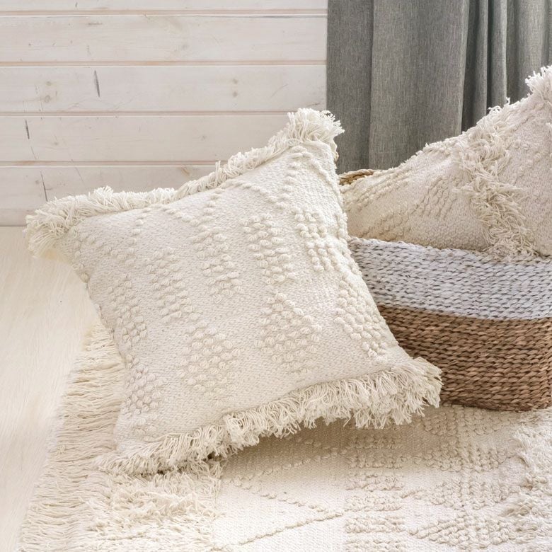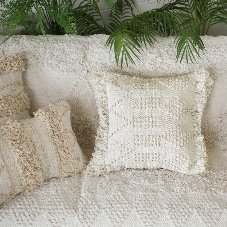 クッションケース ホワイトモロカン 白 白色 コットン 綿 正方形 クッションカバー クッション ホワイト ボヘミアン 45×45cm ホワイト アイボリー BOHO [34425]【 カバー おしゃれ お洒落 エスニック ボーホー モロッカン モロカン 四角 オールシーズン 春 夏 秋 冬 インテリアファブリック アジアン アジアン雑貨 】