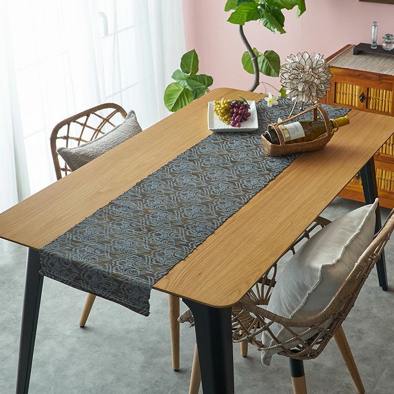 テーブルウェア マット タペストリー テレビ台 棚 タンス カフェ ホテル ランチ ディナー テーブルコーディネート モダン 和室 和風 リビング 寝室 パーティ プレゼント ギフト お祝い テーブルランナー テーブルクロス アラベスク模様 天然素材 ウォーターヒヤシンス プリント 約 W 150cm D 35cm H 0.5cm  テーブルライナー テーブルカバー ダイニングテーブル ブラック ブラウン おしゃれ 可愛い 装飾 和モダン エスニック リゾート 南国 アジアン [10824]