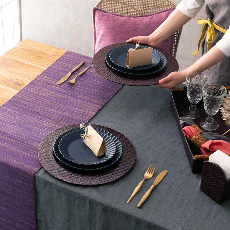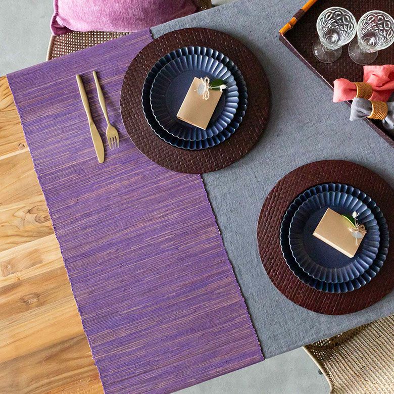 テーブルランナーやタペストリーに使えるバリ島のアジアン雑貨 ウォーターヒヤシンスで出来た編み目がオシャレなテーブルランナー[パープル][10839]【テーブルセンター テーブルデコレーション テーブル布 中央 タペストリー クロス ファブリック バリ 雑貨 アジアン雑貨 新生活】
