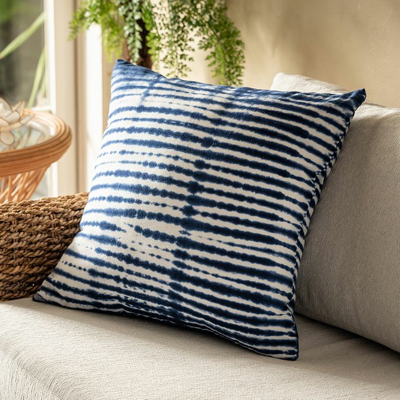 夏仕様 45cm×45cm ファブリック ピロークッション リビング 【メール便対応】 クッションカバー クッション カバー タイダイ インディゴ ブルー 45×45cm 正方形 [34504]【 絞り染め 洗える 夏 春 青 波 海 コットン 綿 ソファ おしゃれ インテリア 北欧 サーフ ビーチリゾート 海系 マリン リゾート コースタル アジアン 】