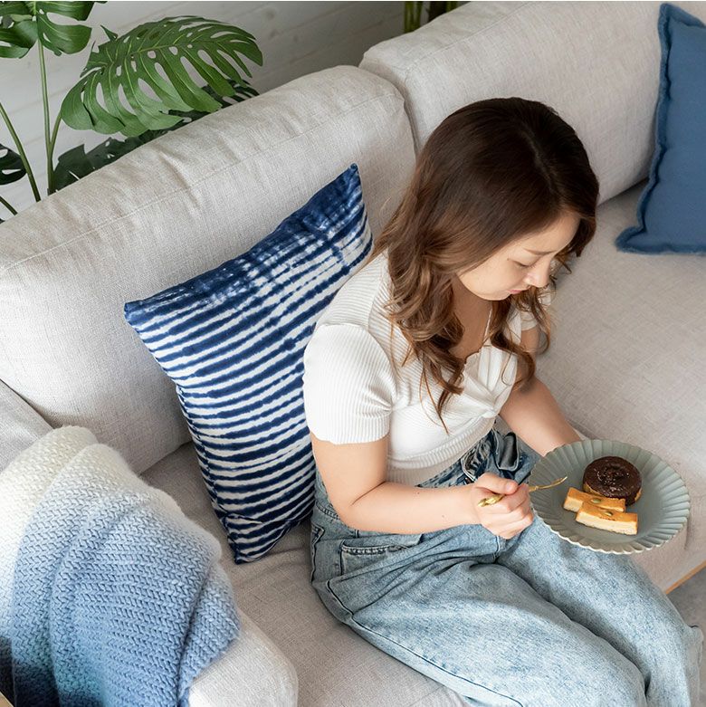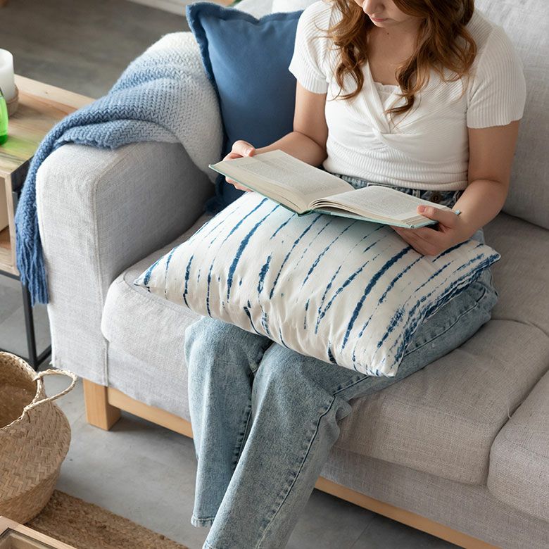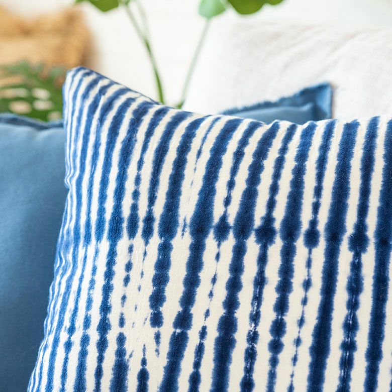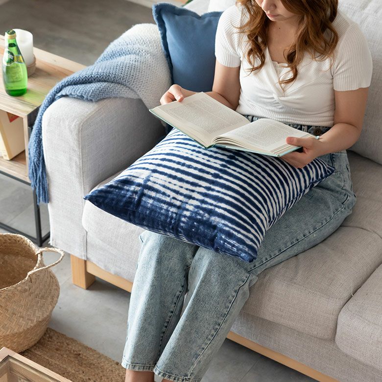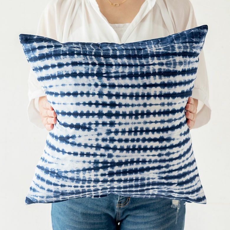 夏仕様 45cm×45cm ファブリック ピロークッション リビング 【メール便対応】 クッションカバー クッション カバー タイダイ インディゴ ブルー 45×45cm 正方形 [34503]【 絞り染め 洗える 夏 春 青 波 海 コットン 綿 ソファ おしゃれ インテリア 北欧 サーフ ビーチリゾート 海系 マリン リゾート コースタル アジアン 】