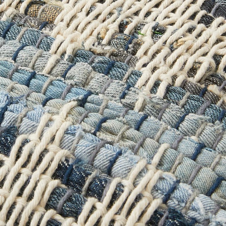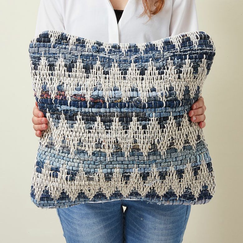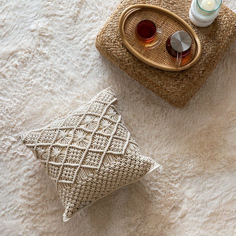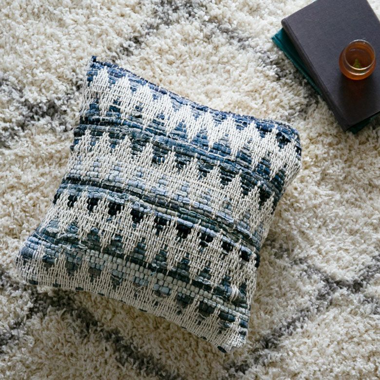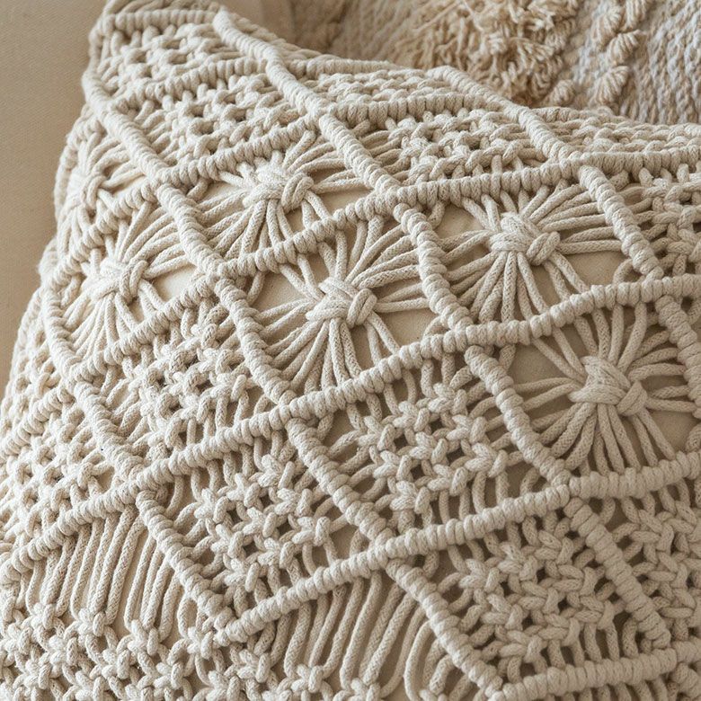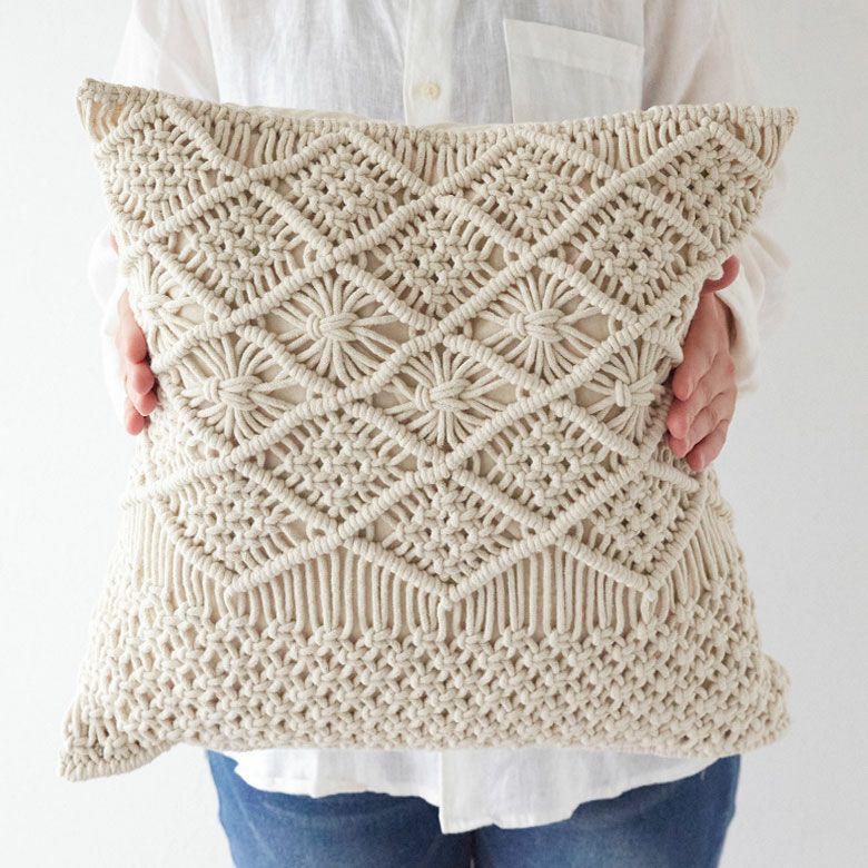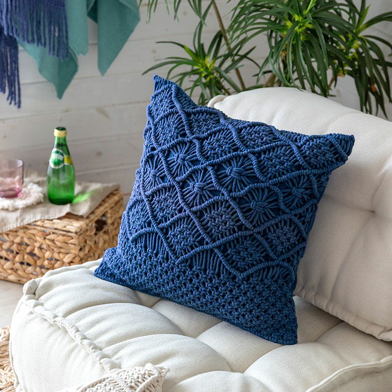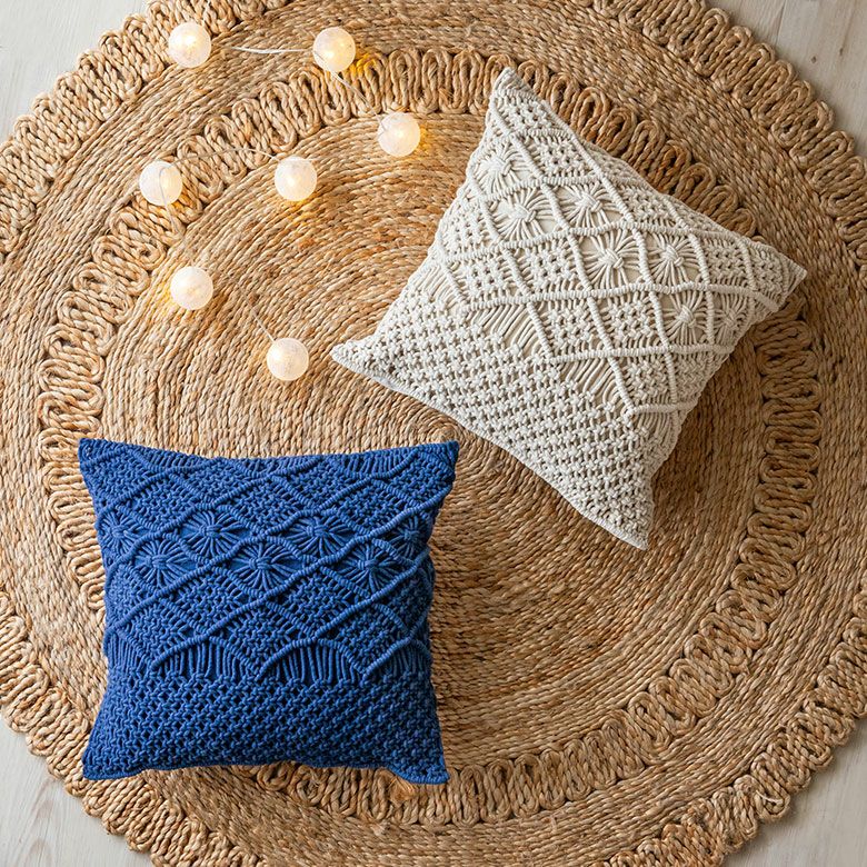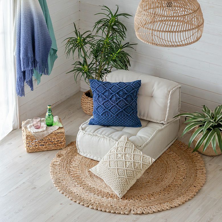 ハンドメイド クロシェ モロッカン 編物 リビング クッションカバー マクラメ 編み コットン 正方形 45×45cm 約 W 44cm D 44cm H 1cm [34492]【 綿 白 アイボリー ブルー 青 紺 ネイビー モロッコ ボヘミアン かぎ針編み かぎ編み 北欧 ナチュラル おしゃれ リゾート 韓国 インド インテリア おうち時間 アジアン 雑貨 】