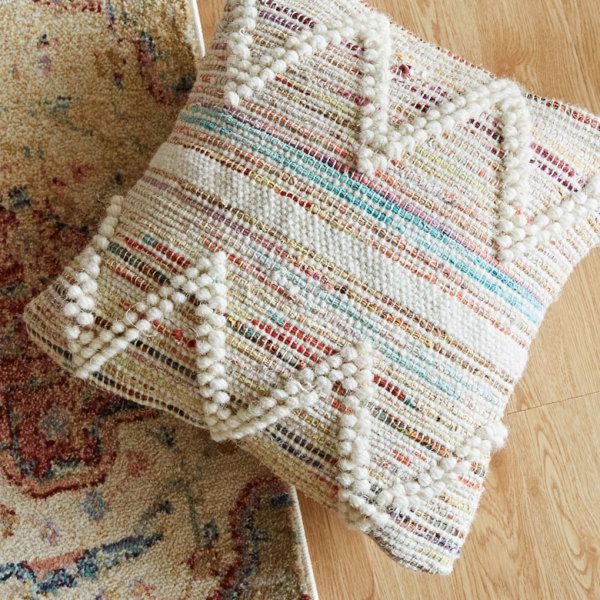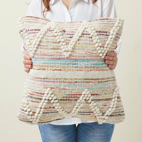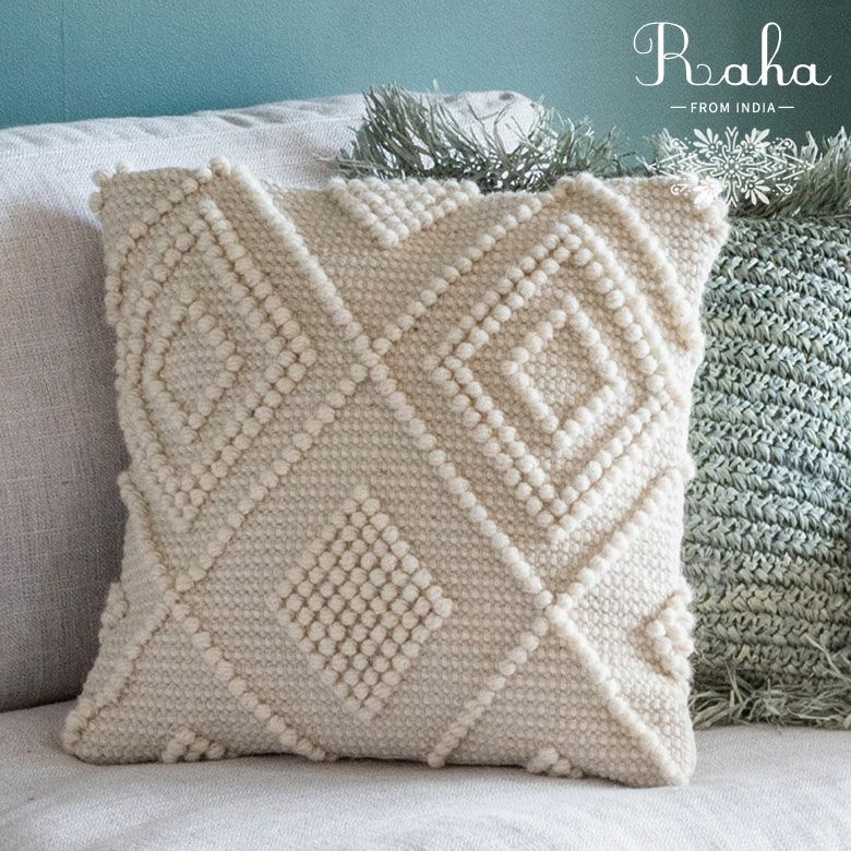 クッションカバー クッションケース ファブリック ボヘミアン クッションカバー インド ナチュラル アイボリー 幾何柄 ジオメトリック ダイヤ柄 Raha ラーハ [34487-mt]【 正方形 四角 45角 45cm用 クッション用カバー ベッド リビング 寝室 おしゃれ BOHO ボーホー モロッカン アジアン アジアン雑貨 エスニック ミックス マルチ 】