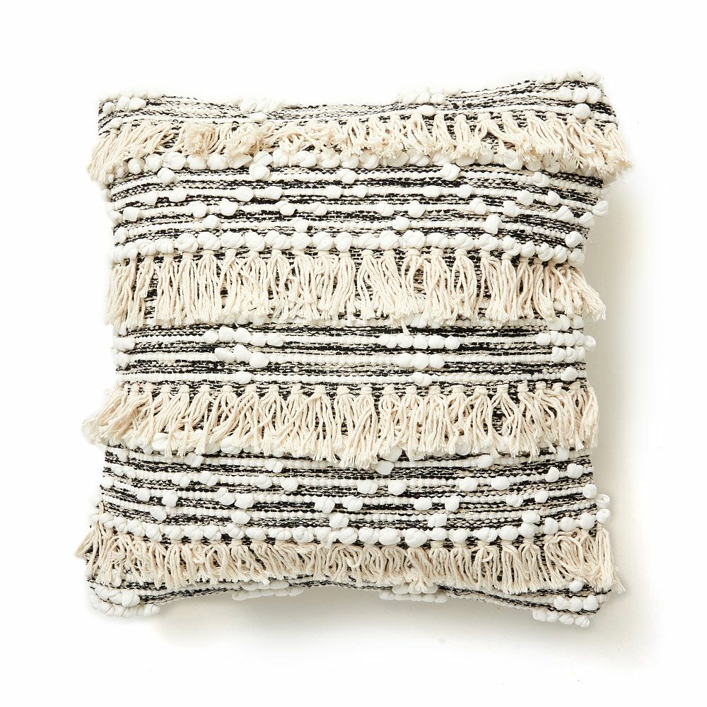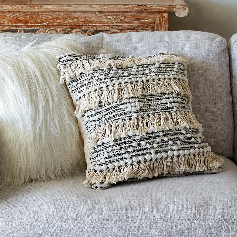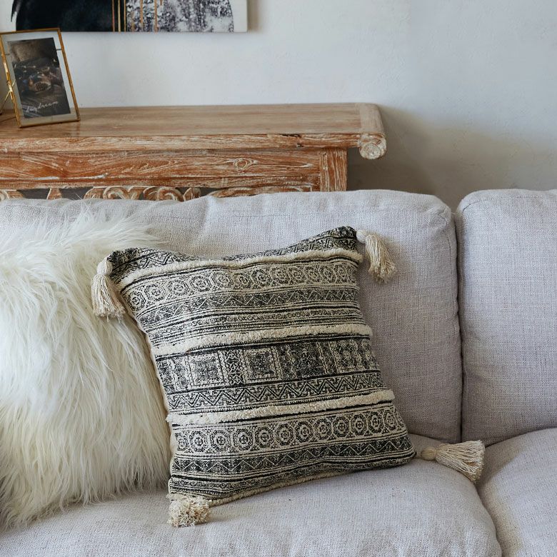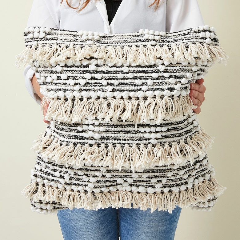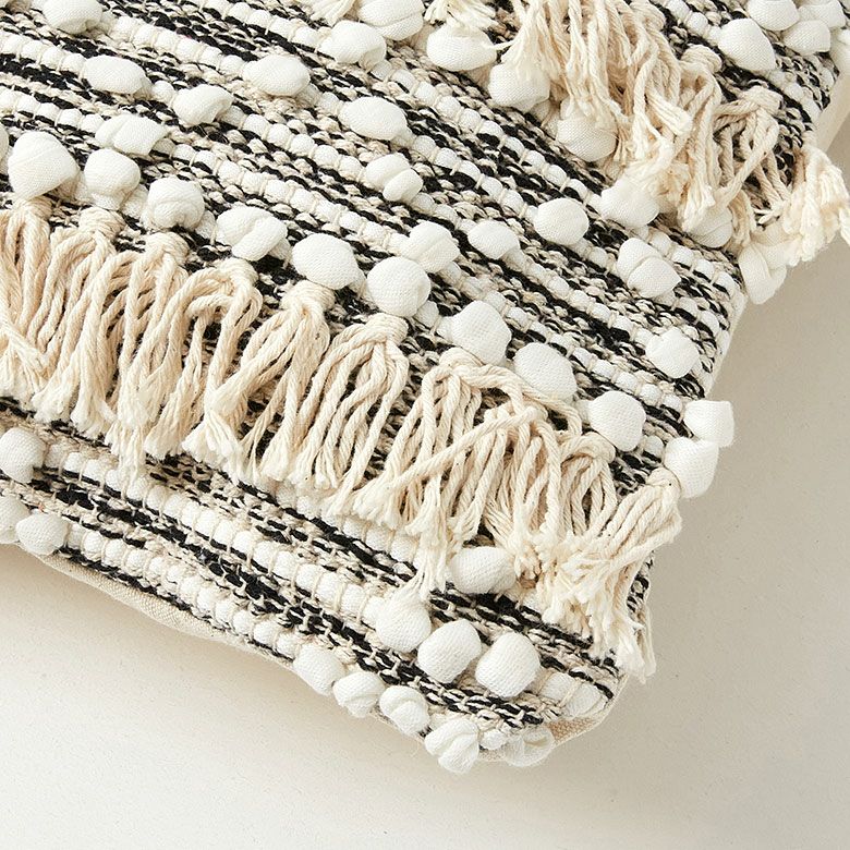 クッションカバー ボヘミアン フリンジ モロッコ モロッカン クッションカバー コットン ハンドルーム(手織り) 45×45cm フリンジ ブラック 黒 Raha ラーハ [34477-bk]【 45角 45cm用 クッション用カバー ソファ ベッド アウトドア リビング 寝室 おしゃれ BOHO ボーホー モロッカン アジアン アジアン雑貨 エスニック 】