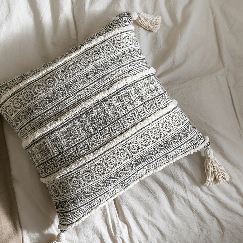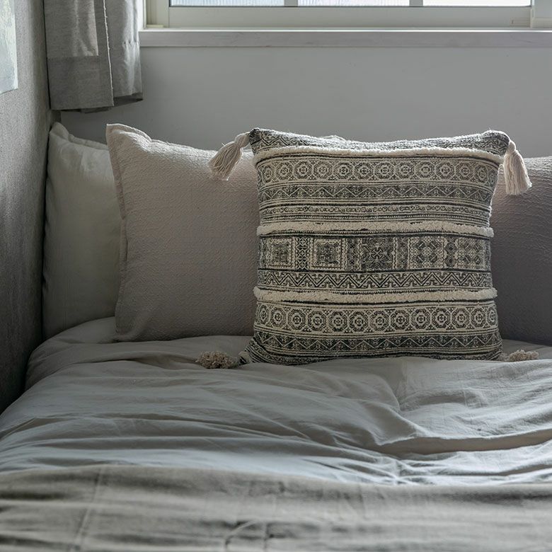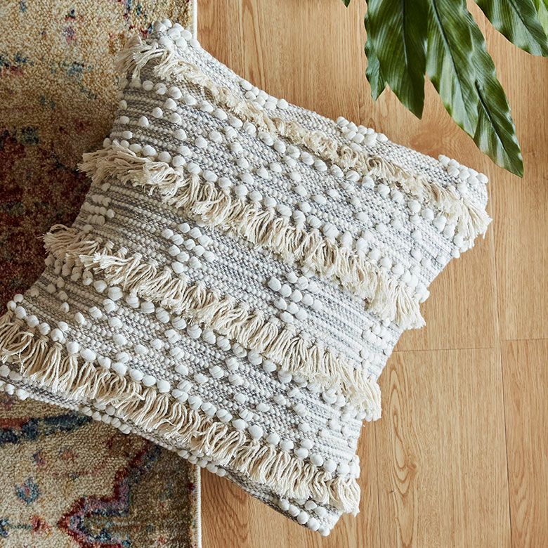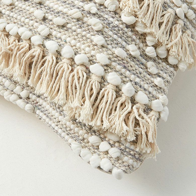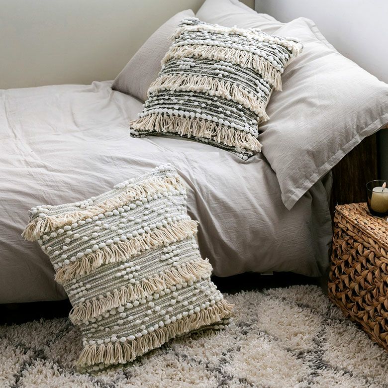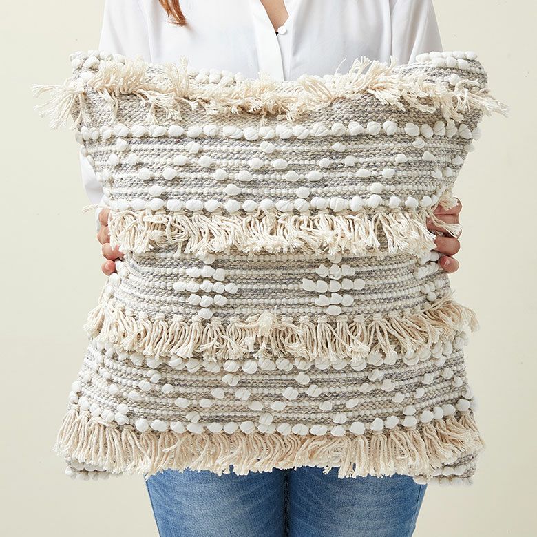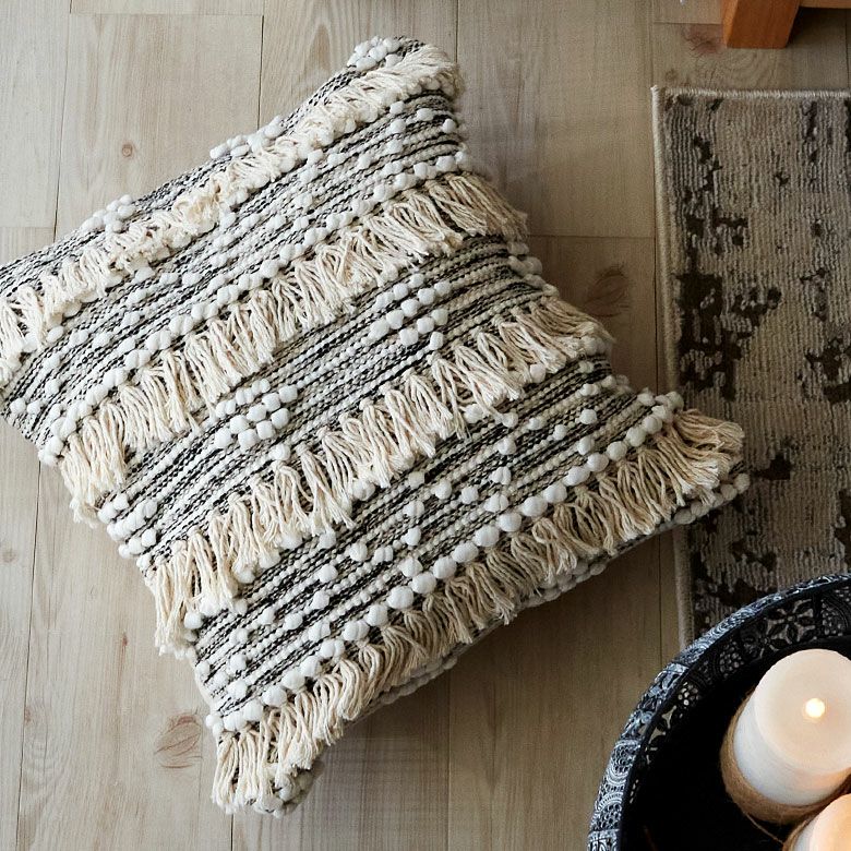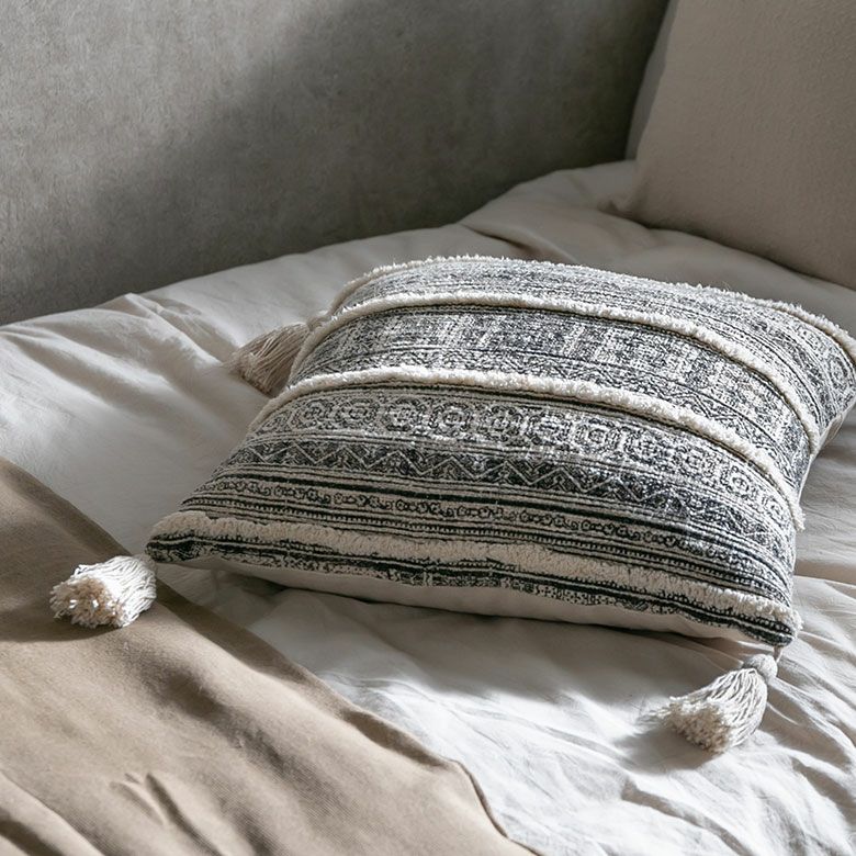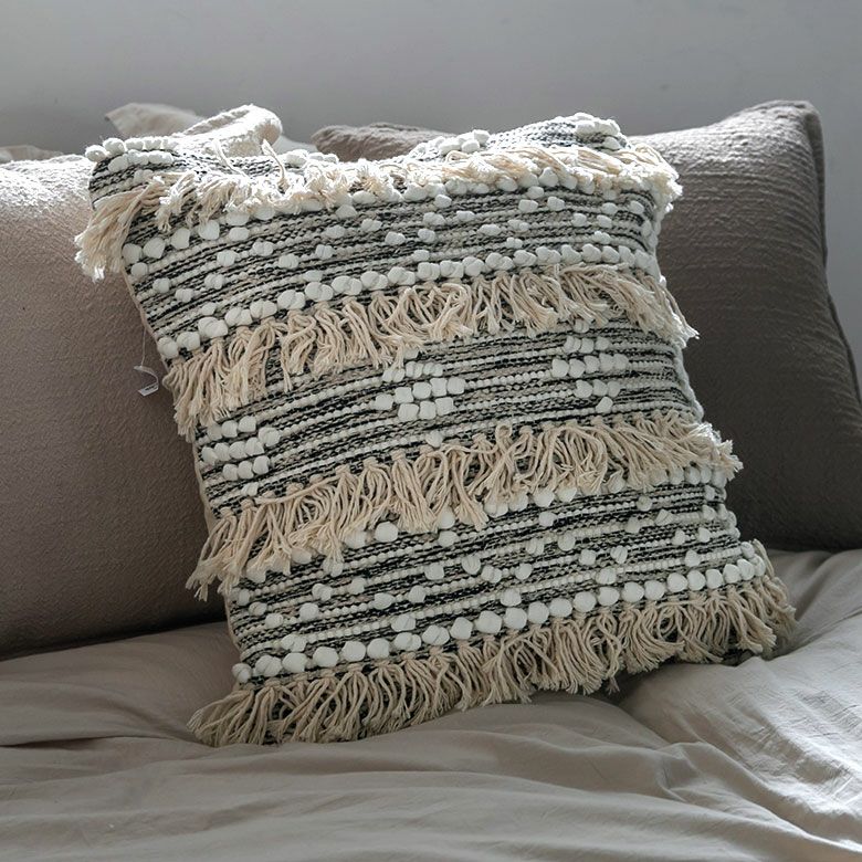 クッションカバー ボヘミアン フリンジ モロッコ モロッカン クッションカバー コットン ハンドルーム(手織り) 45×45cm フリンジ デザイン グレー Raha ラーハ [34477-gy]【 45角 45cm用 クッション用カバー ソファ ベッド アウトドア リビング 寝室 おしゃれ BOHO ボーホー モロッカン アジアン アジアン雑貨 エスニック 】