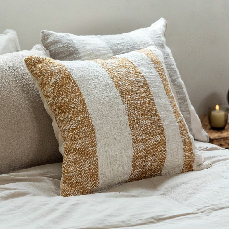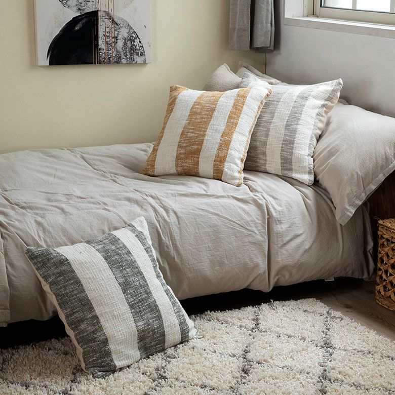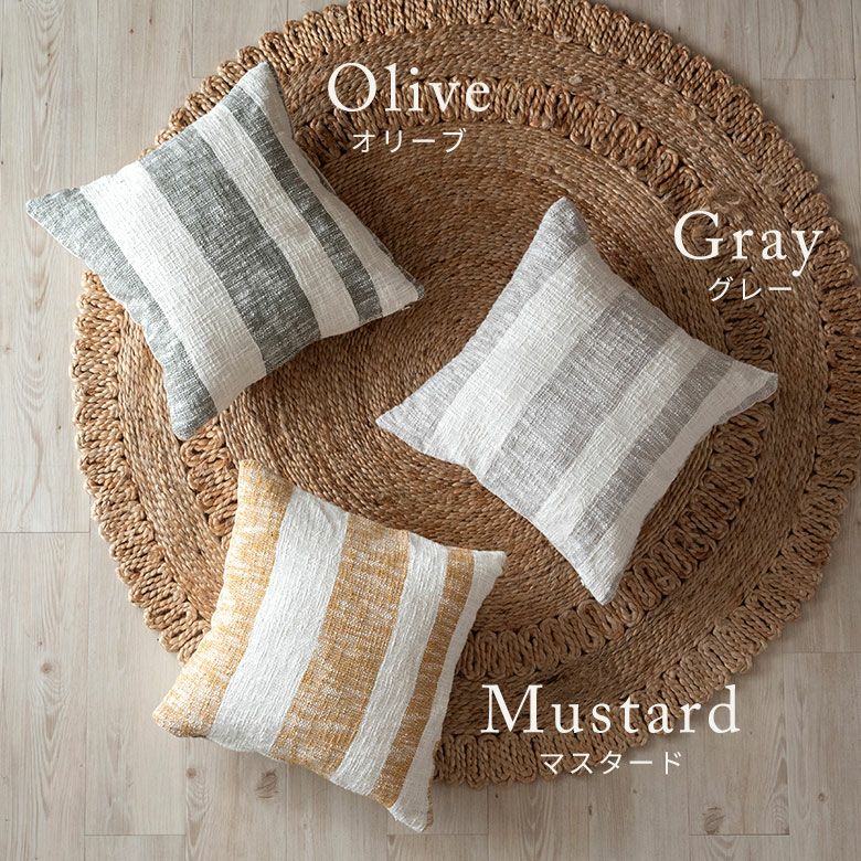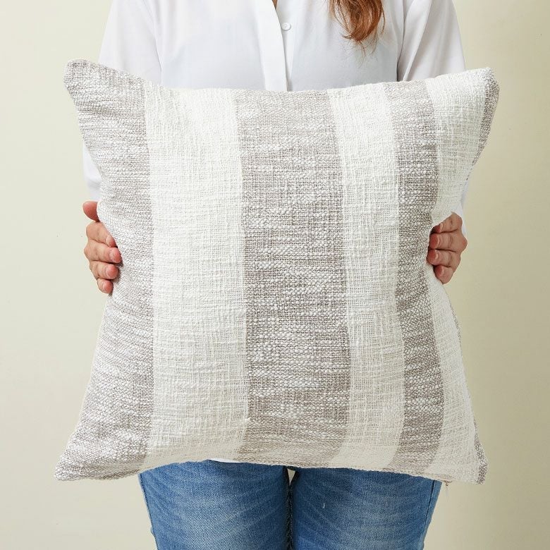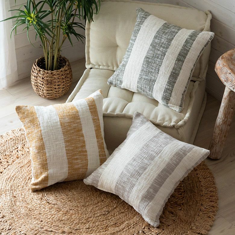 クッションカバー シンプル ナチュラル ストライプ 【メール便対応】 クッションカバー コットンウーブン 45×45cm ボーダー柄 インド [34482]【 正方形 四角 45角 45cm用 クッション用カバー ソファ ベッド アウトドア 車内 おしゃれ BOHO ボーホー モロッカン アジアン アジアン雑貨 エスニック 】