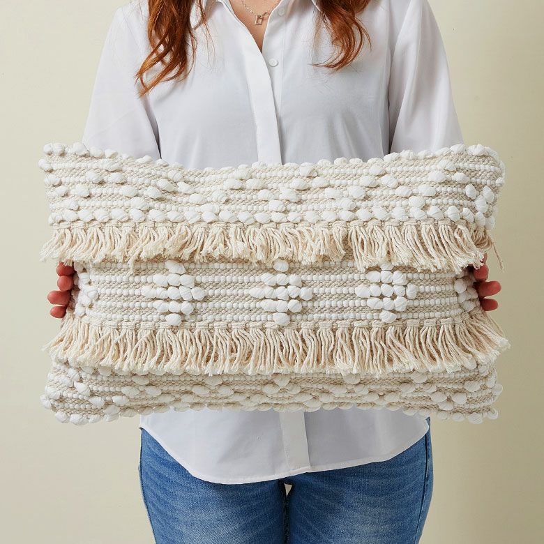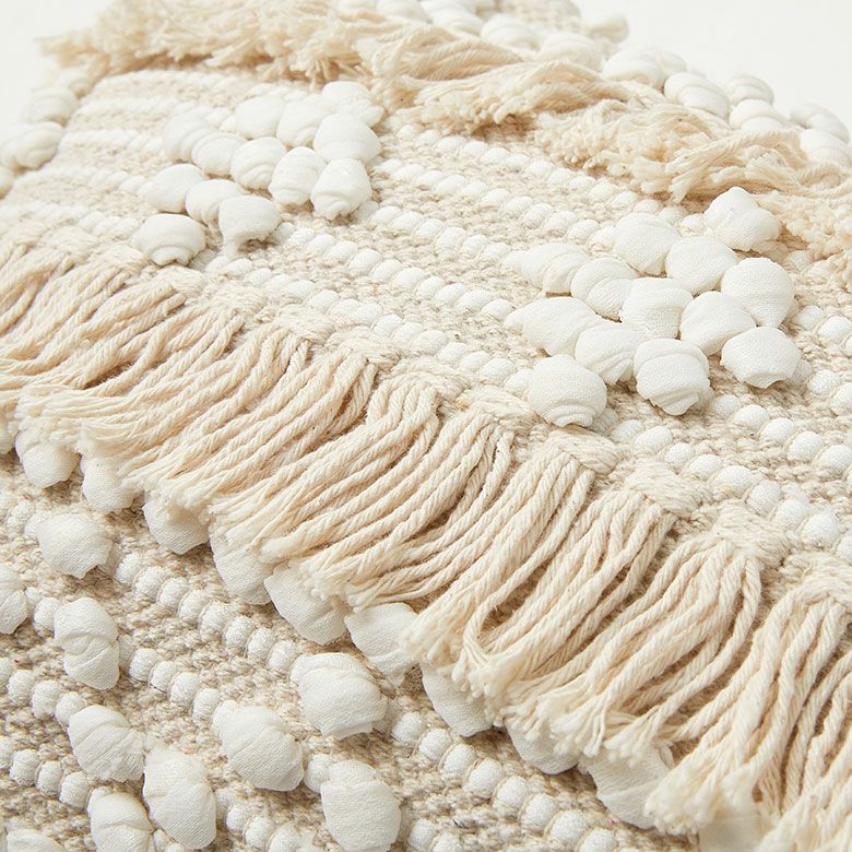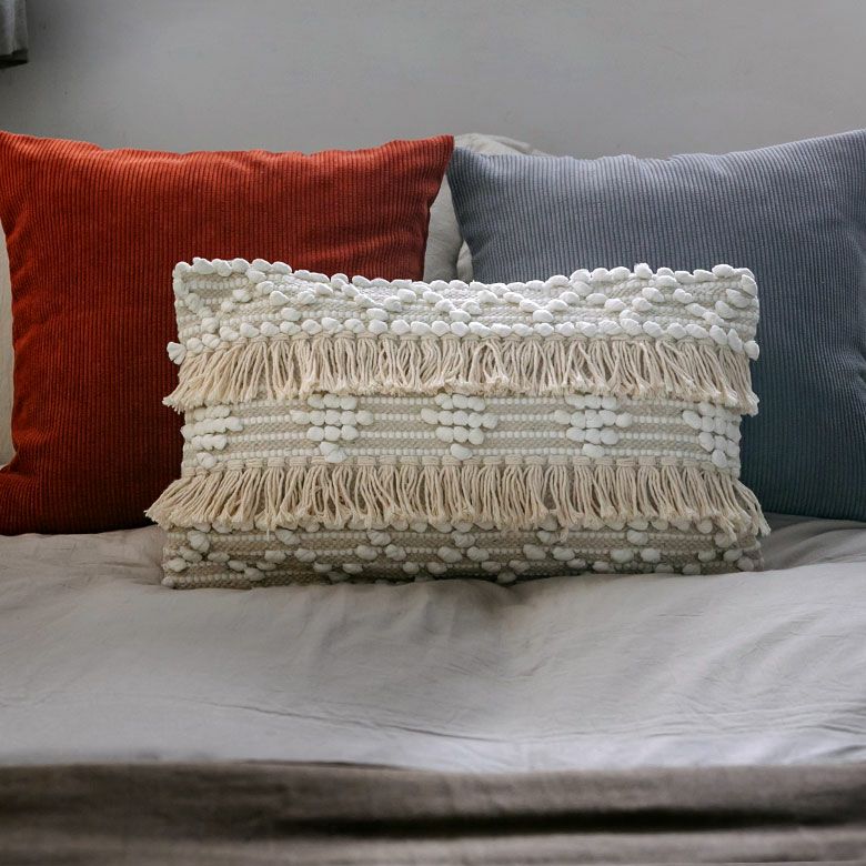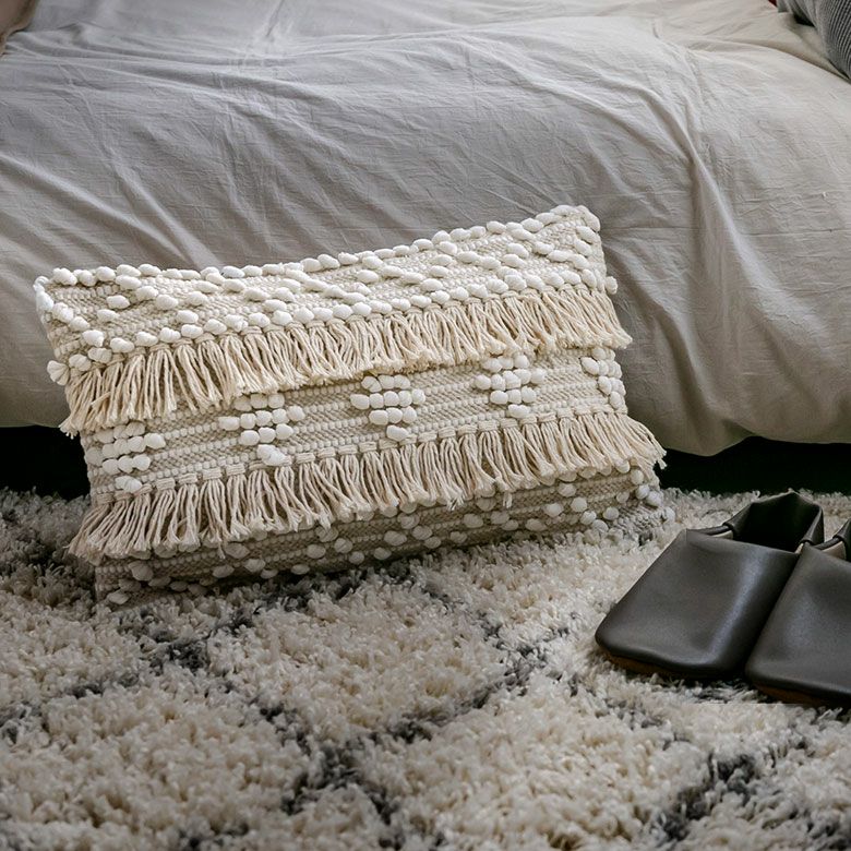 クッションカバー ボヘミアン フリンジ モロッコ モロッカン クッションカバー コットン ハンドルーム(手織り) 30×50cm フリンジ デザイン アイボリー Raha ラーハ [34478]【 長方形 横長 クッション用カバー ソファ ベッド アウトドア リビング 寝室 おしゃれ BOHO ボーホー モロッカン アジアン アジアン雑貨 エスニック 】