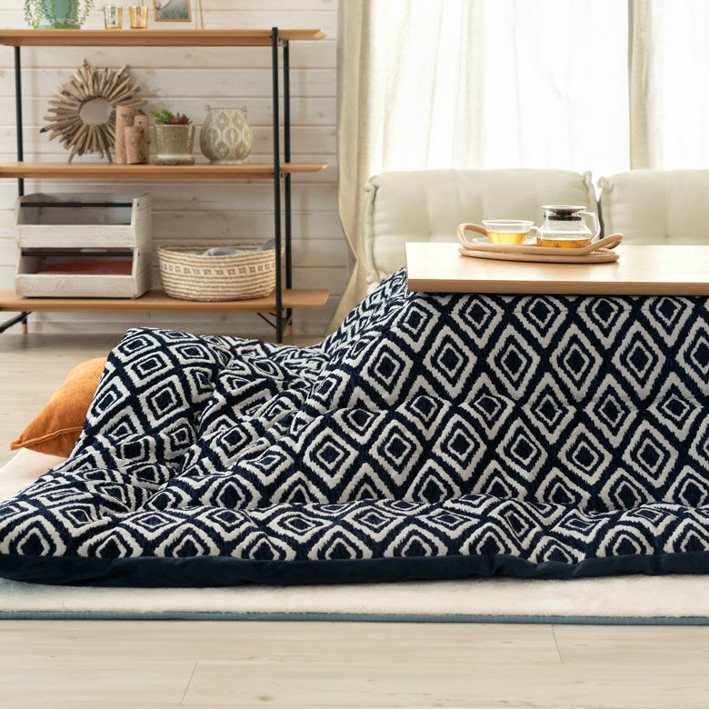大判 テーブルウェア テーブル マット アジア カフェ テーブルクロス インド ブロック プリント 柄 綿 コットン W 150cm D 220cm H 1cm マルチ クロス カバー ネイビー [34453-nv]【 テーブル カバー 布 ダイニング ディナー ランチ キッチン クリスマス パーティー おしゃれ リゾート 和 モダン アジア エスニック アジアン 】