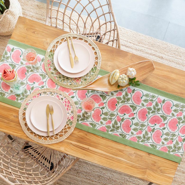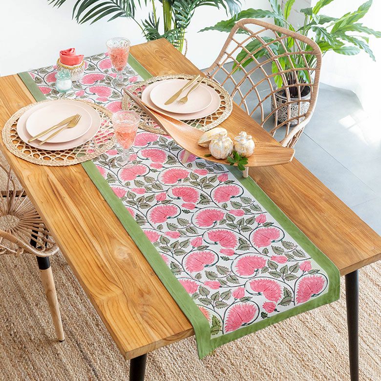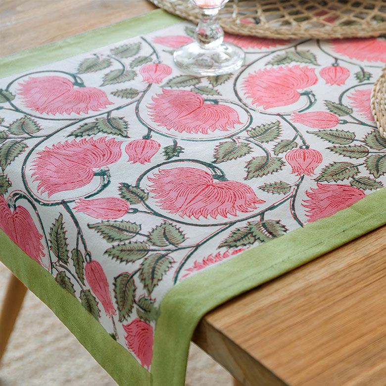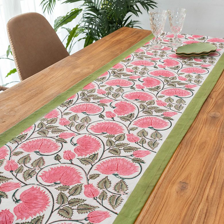 テーブルクロス テーブルウェア テーブル マット アジア カフェ テーブルランナー インド ブロック プリント 柄 綿 コットン W 150cm D 40cm H 0.5cm テーブルライナー レッド [34452-rd]【 テーブル カバー 布 ダイニング ディナー ランチ キッチン クリスマス パーティー おしゃれ リゾート モダン アジア エスニック アジアン 】