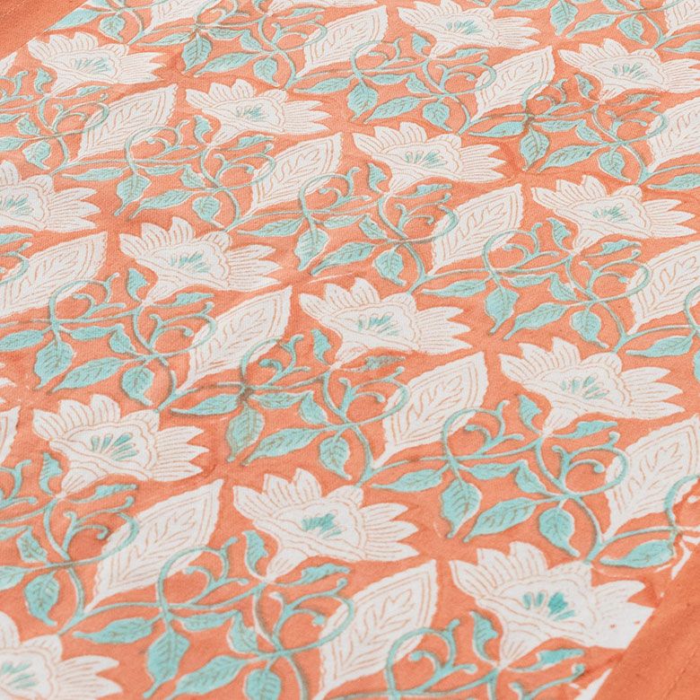 大判 テーブルウェア テーブル マット アジア カフェ テーブルクロス インド ブロック プリント 柄 綿 コットン W 150cm D 220cm H 1cm マルチ クロス カバー オレンジ [34453-og]【 テーブル カバー 布 ダイニング ディナー ランチ キッチン クリスマス パーティー おしゃれ リゾート モダン アジア エスニック アジアン 】