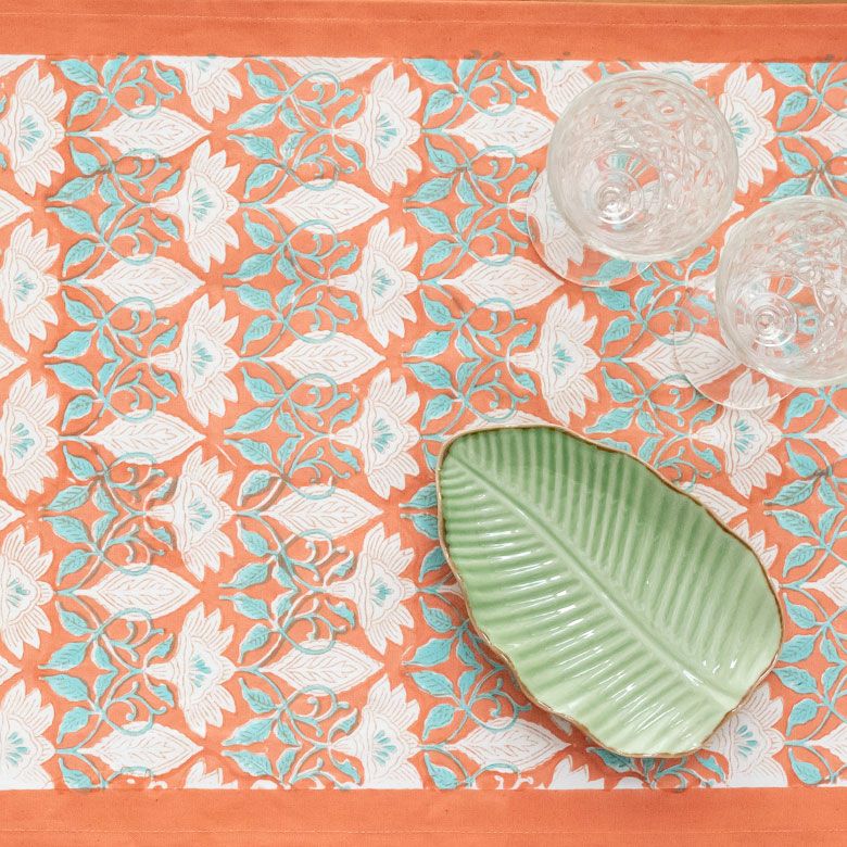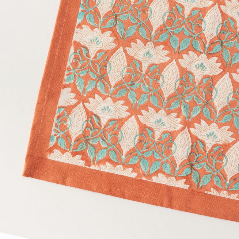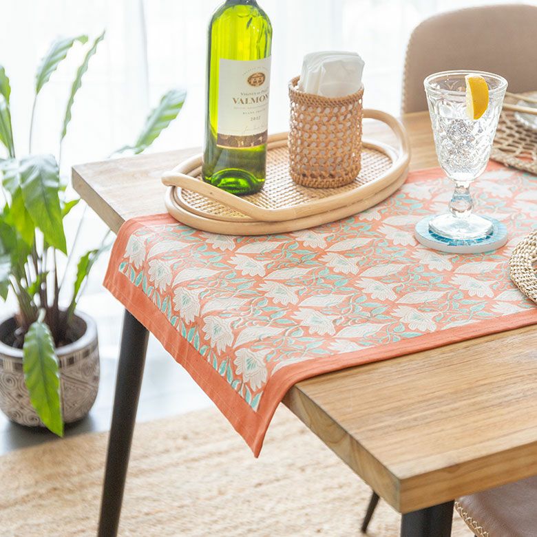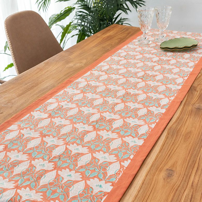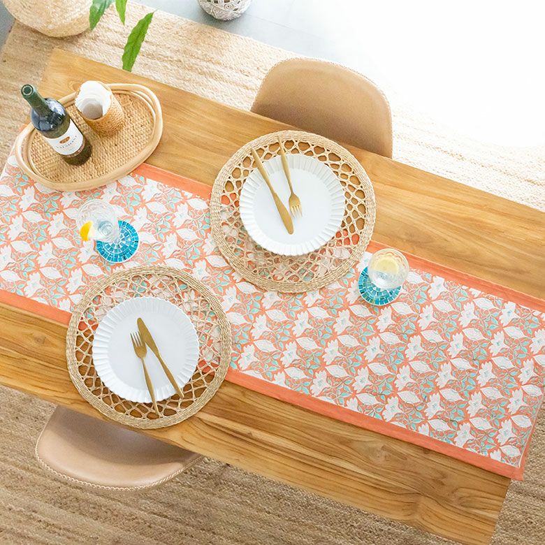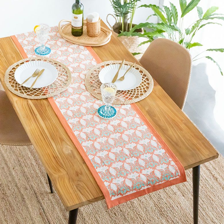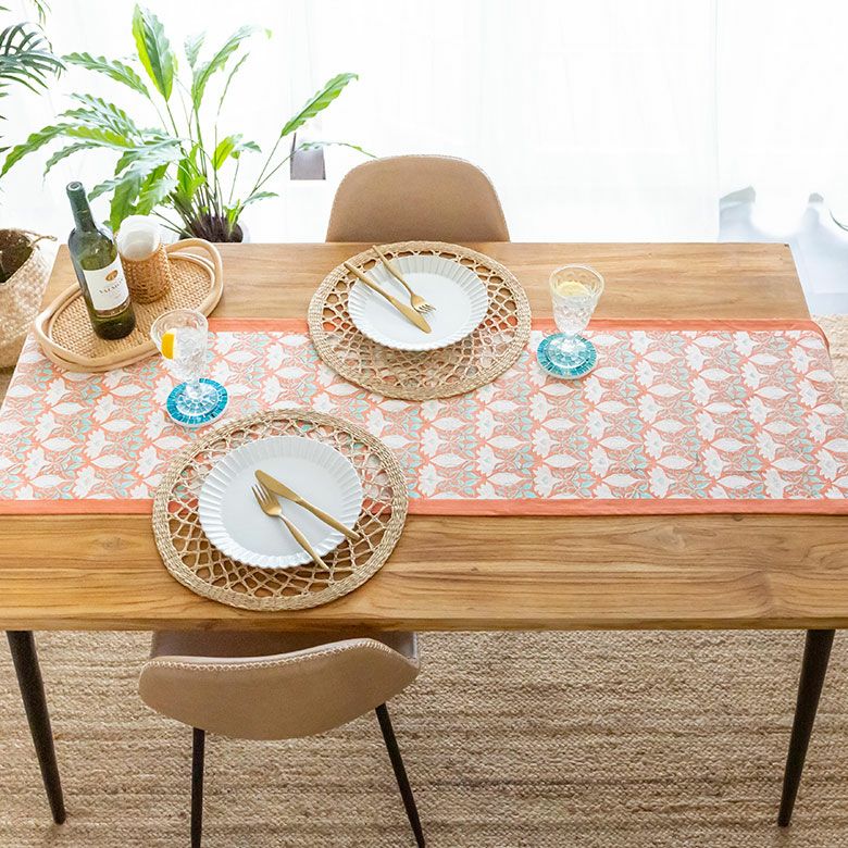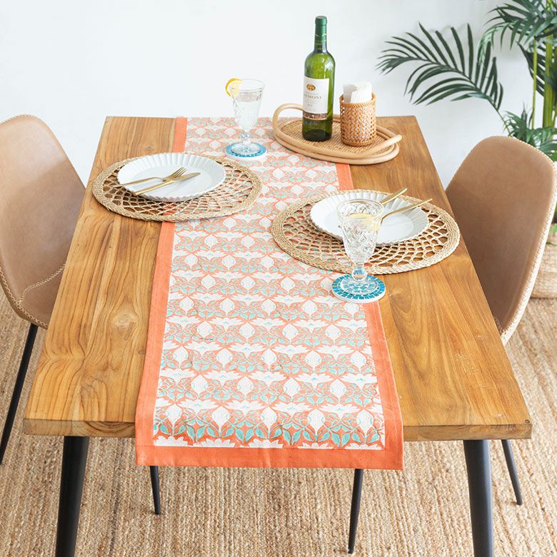 テーブルクロス テーブルウェア テーブル マット アジア カフェ テーブルランナー インド ブロック プリント 柄 綿 コットン W 157cm D 50cm H 0.5cm テーブルライナー オレンジ [34452-og]【 テーブル カバー 布 ダイニング ディナー ランチ キッチン クリスマス パーティー おしゃれ リゾート モダン アジア エスニック アジアン 】