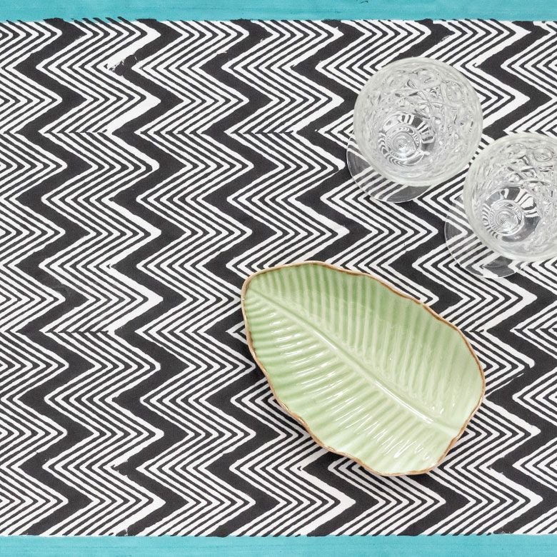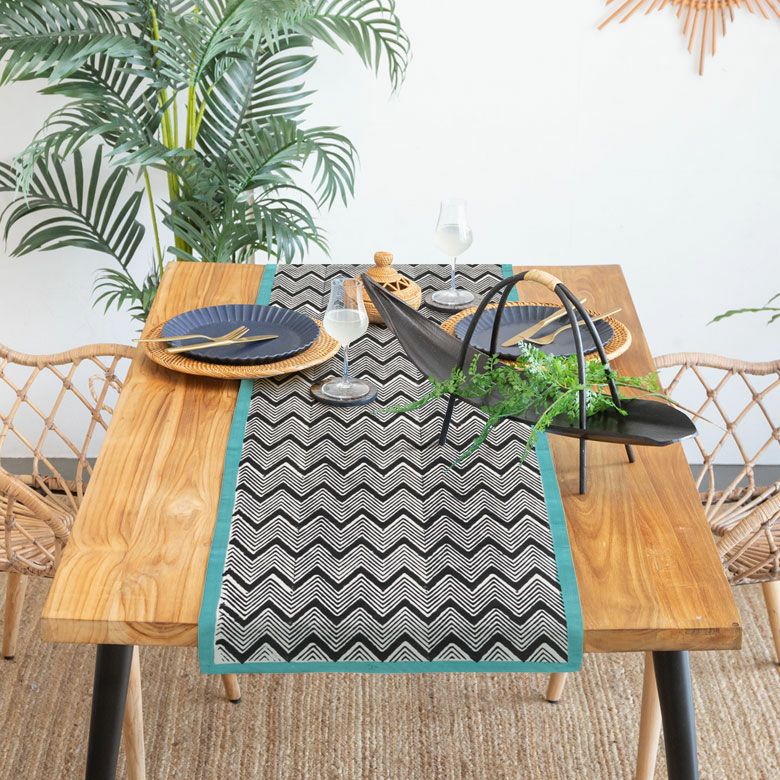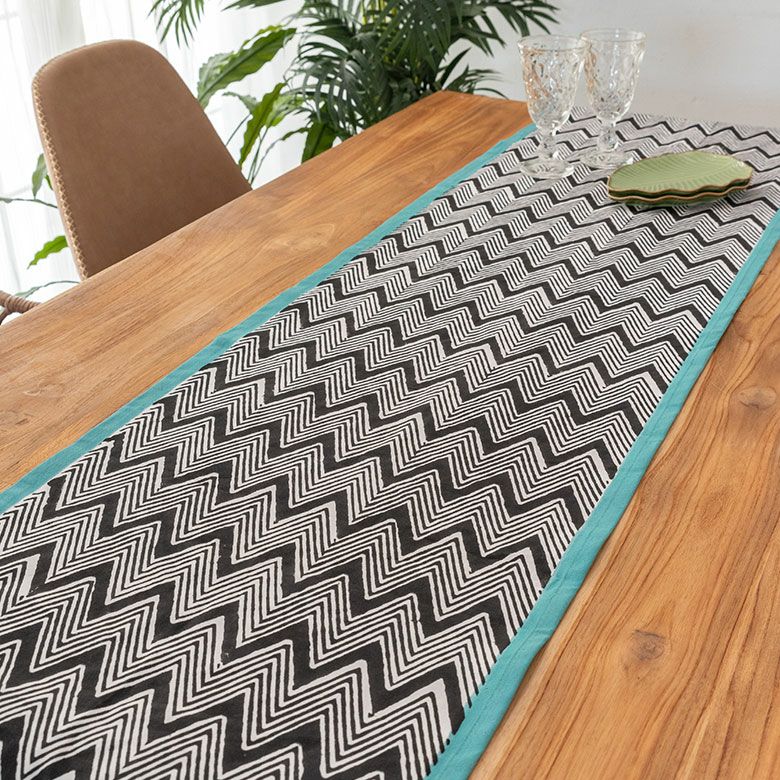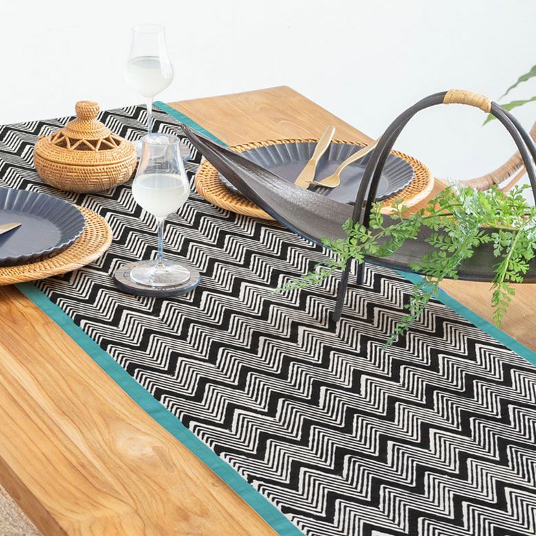 テーブルクロス テーブルウェア テーブル マット アジア カフェ テーブルランナー インド ブロック プリント 柄 綿 コットン W 150cm D 40cm H 0.5cm テーブルライナー ブラック [34452-bk]【 テーブル カバー 布 ダイニング ディナー ランチ キッチン クリスマス パーティー おしゃれ 北欧 リゾート モダン アジア エスニック アジアン 】