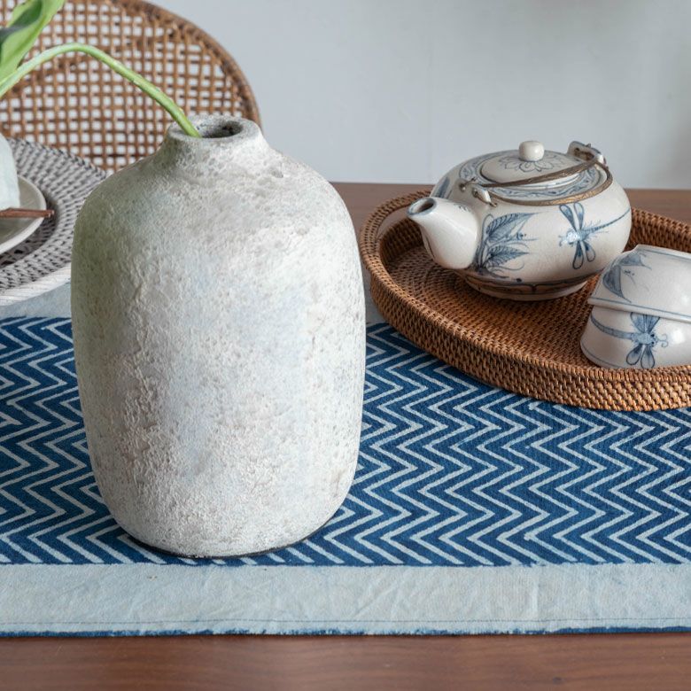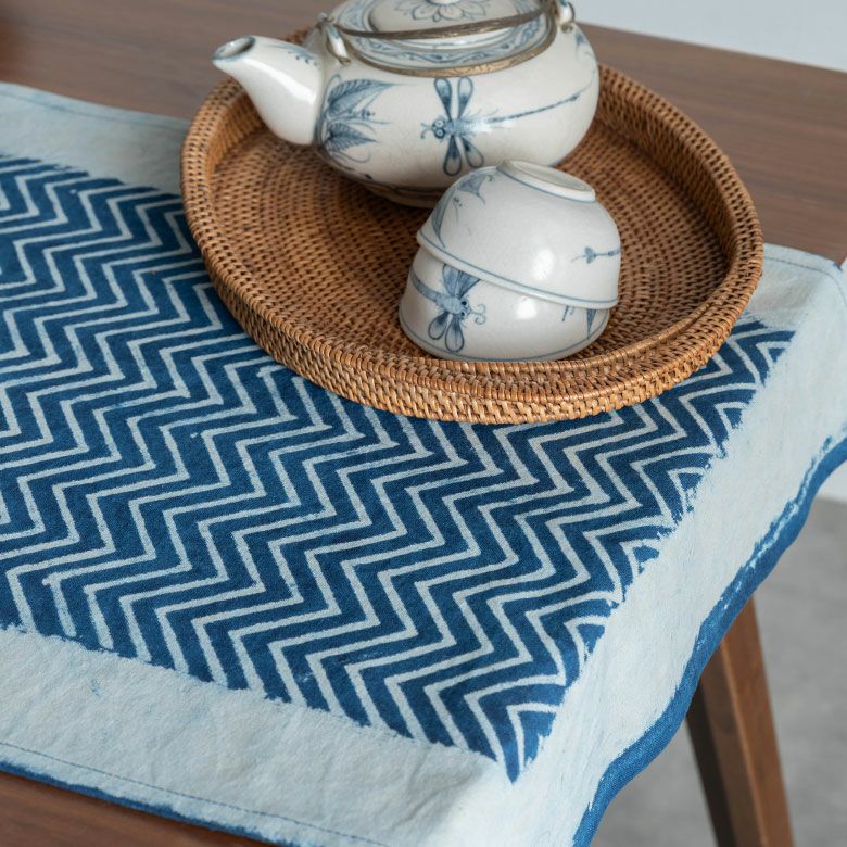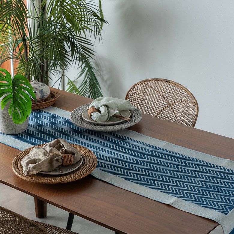 テーブルクロス テーブルウェア テーブル マット アジア カフェ テーブルランナー インド ブロック プリント 柄 綿 コットン W 150cm D 40cm H 0.5cm テーブルライナー ネイビー [34452-nv]【 テーブル カバー 布 ダイニング ディナー ランチ キッチン クリスマス パーティー おしゃれ リゾート 和 モダン アジア エスニック アジアン 】