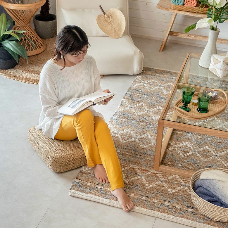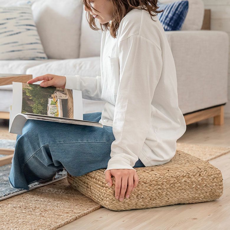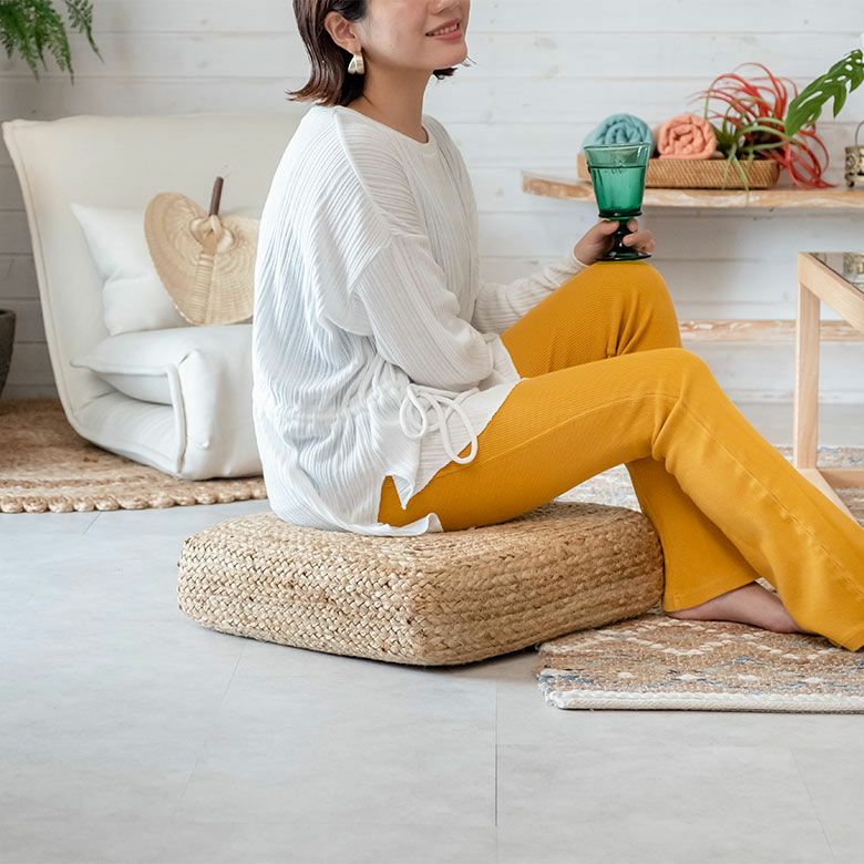 夏 麻 シンプル リビング ダイニング 座椅子 一人暮らし フロアクッション 座布団 ジュート 正方形 約 W 46cm D 46cm H 15cm フロア フロアー クッション ざぶとん スツール あぐら 座る スクエア 四角 床 フローリング 硬め 固め 低め 厚め 厚手 分厚い 極厚 北欧 おしゃれ リゾート インテリア アジアン 雑貨 [34508]