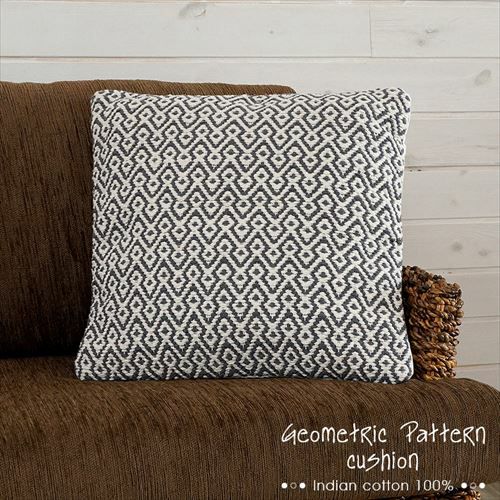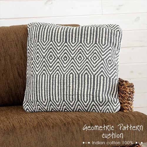 アジアンや和室にもマッチするおしゃれなクッションカバー☆ 【ヌードクッション付き】インドコットン クッション 45×45cm [ハーリキン] (91094)【正方形 クッションカバー グレー 角型 四角形 ベッドクッション カバー おしゃれ かわいい インテリアファブリック イカット ソファ リビング 居間 ベッド アジアン】