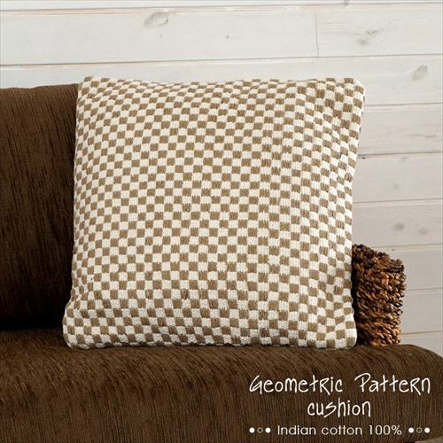 アジアンや和室にもマッチするおしゃれなクッションカバー☆ 【ヌードクッション付き】インドコットン クッション 45×45cm [チェック] (91098)【正方形 クッションカバー 角型 四角形 ベッドクッション カバー おしゃれ かわいい インテリアファブリック イカット ソファ リビング 居間 ベッド アジアン】