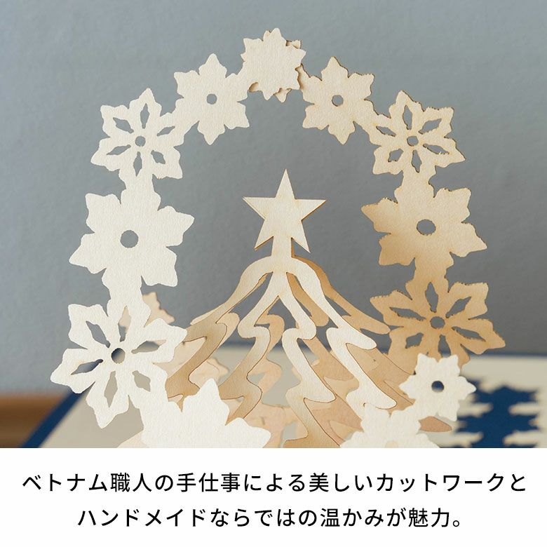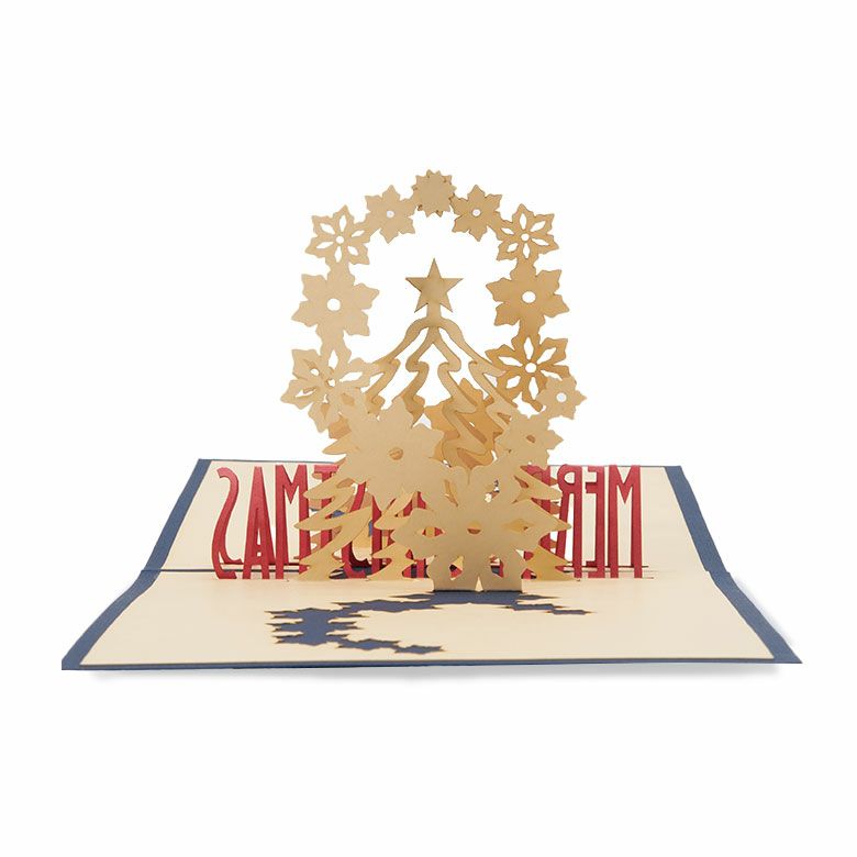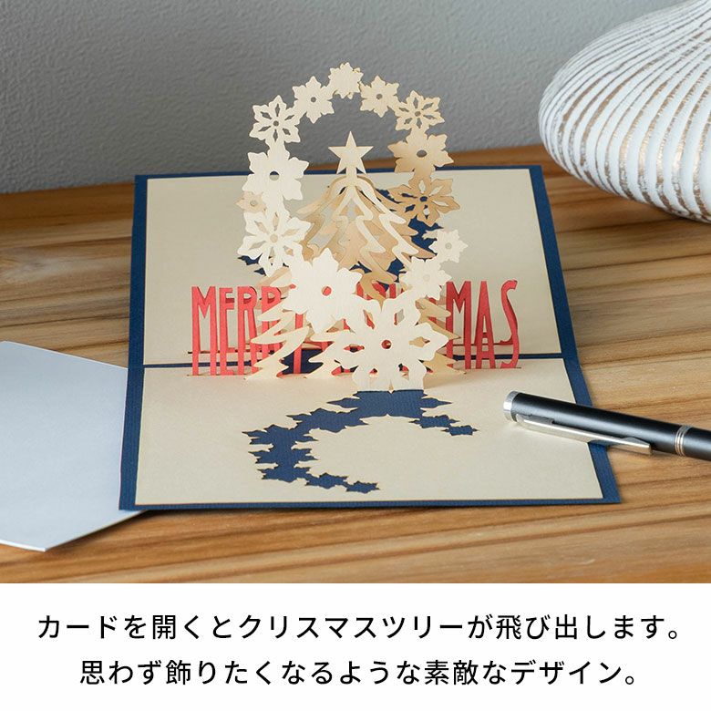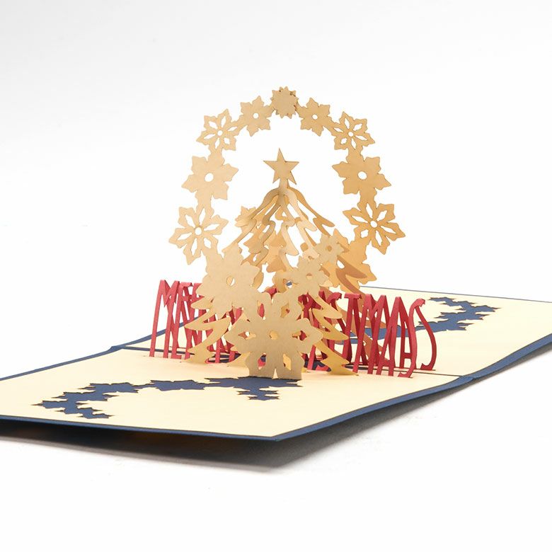・ツリーとリースが飛び出す、開いて楽しい立体ポップアップのクリスマスカード