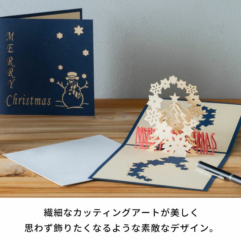 白い封筒付きで、家族や友人、取引先への贈り物にもぴったり。「贈る」だけでなく、「飾る」楽しみもある、心に残るクリスマスカードです。大切な人へのプレゼントを印象的に演出してください。