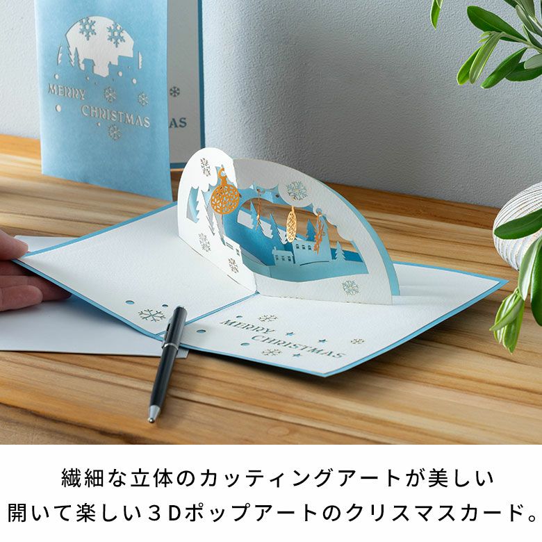 白い封筒付きで、家族や友人、取引先への贈り物にもぴったり。「贈る」だけでなく、「飾る」楽しみもある、心に残るクリスマスカードです。大切な人へのプレゼントを印象的に演出してください。