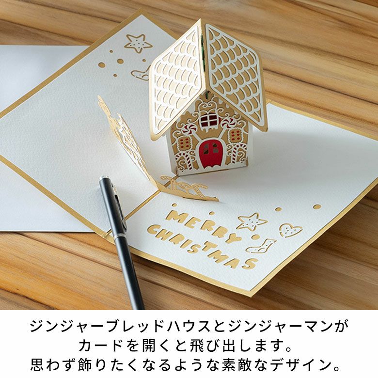 ・ジンジャーブレッドハウスとジンジャーマンが飛び出す、開いて楽しい立体ポップアップのクリスマスカード