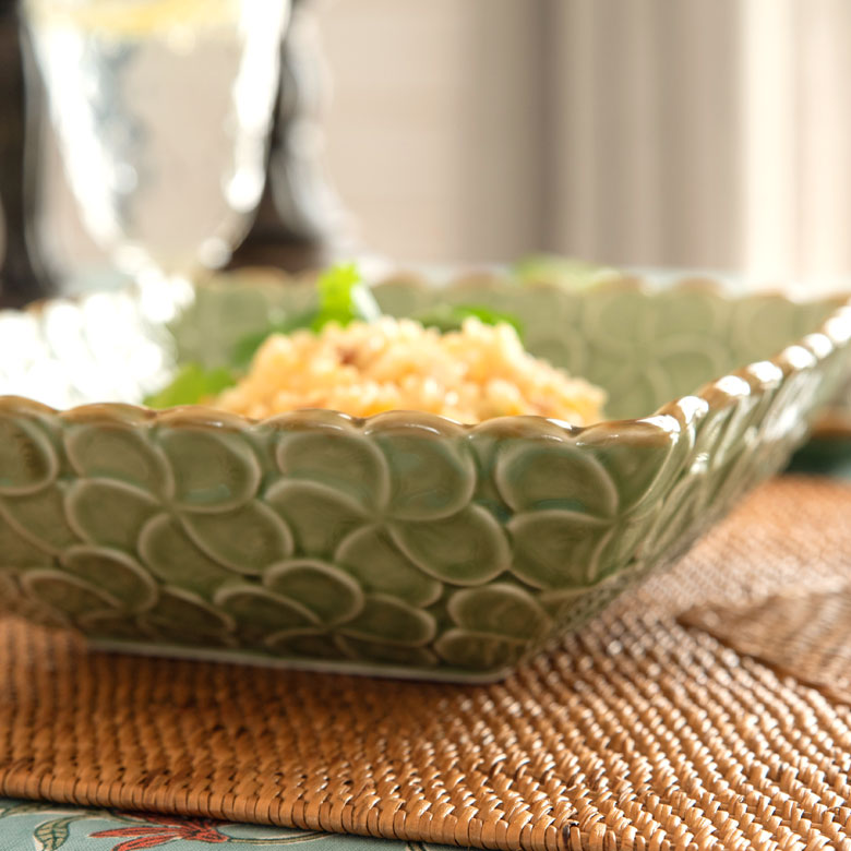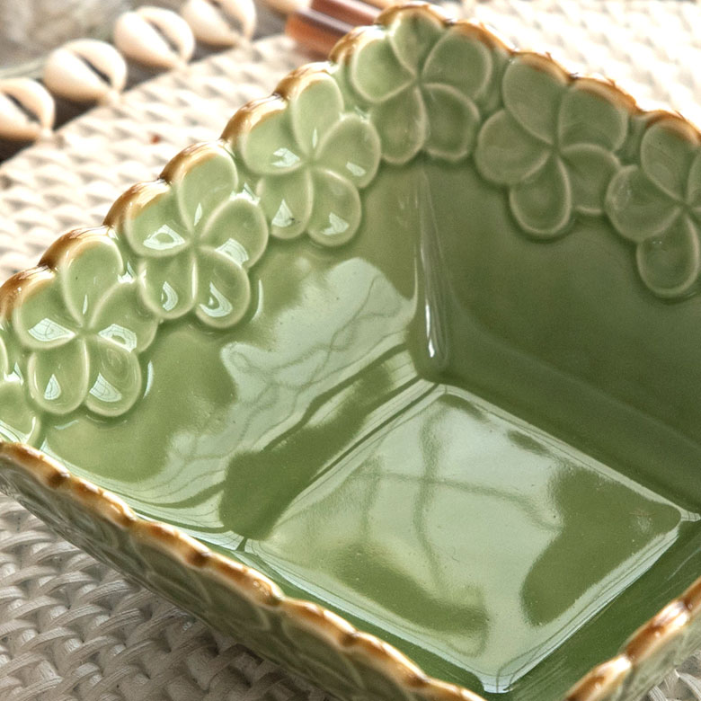 プルメリアの花をあしらった、南国リゾート感たっぷりのスクエアボウル。