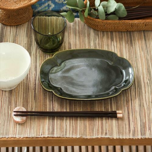 プレート 長方形 お刺身 寿司皿 長皿 テーブルコーディネート 長角皿 プルメリアモチーフ Mサイズ 25.7cm×12.1cm ホワイト グリーン 陶器製 [pl5-66819 pl5-66820]【 食器 スクエアプレート 平皿 スクエア 角皿 焼き物皿 焼物皿 焼き鳥 焼き魚 長皿 陶器皿 和食器 おしゃれ キッチン雑貨 アジアン 雑貨 アジアン雑貨 】