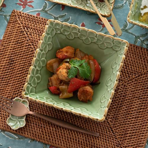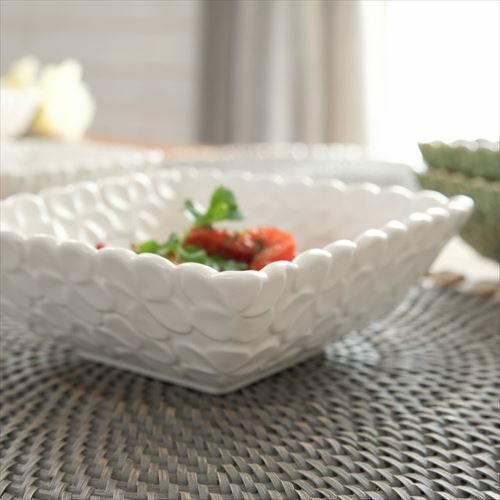 正角皿 器 サラダボウル 盛り皿 白食器 テーブルコーディネート 深角皿 プルメリアモチーフ Mサイズ 14.5cm角 ホワイト 陶器製 [pl7-66823 pl7-66824]【 食器 スクエアボウル 深皿 スクエアプレート 角皿 角深皿 マルチボウル シリアルボウル おしゃれ キッチン雑貨 アジアン 雑貨 アジアン雑貨 】