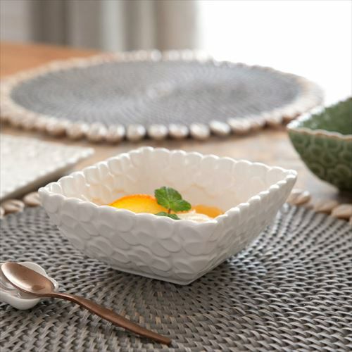 正角皿 お椀 突き出し皿 白食器 テーブルコーディネート 角鉢 プルメリアモチーフ Sサイズ 12cm角 ホワイト 陶器製 [pl8-66825 pl8-66826]【 食器 スクエアボウル 深皿 スクエアプレート 角皿 角深皿 小鉢 中鉢 煮物鉢 デザートボウル アイスカップ おしゃれ キッチン雑貨 アジアン 雑貨 アジアン雑貨 】