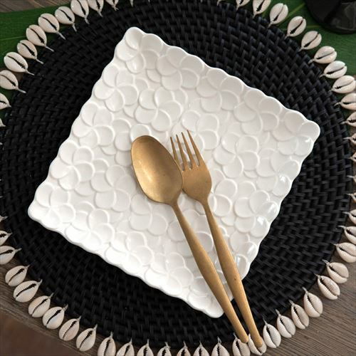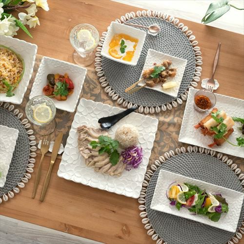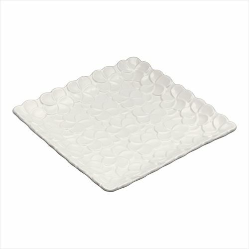 プレート 四角い皿 リゾート 白食器 テーブルコーディネート スクエアプレート プルメリアモチーフ Lサイズ 25cm角 ホワイト 陶器製 [pl9-66827 pl9-66828]【 食器 お皿 平皿 正方形 角皿 大皿 中皿 盛り付け皿 パーティ おもてなし お正月 カフェ レストラン おしゃれ キッチン雑貨 アジアン 雑貨 アジアン雑貨 】