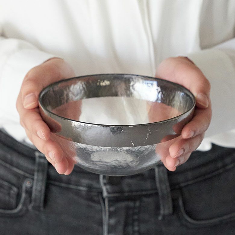 きらびやかなリムがアクセントになった万能サイズのガラスボウル みずみずしいソーダガラスとリムの縁取りがエレガントなガラスボウル小鉢直径約13cm[ 94842 ]