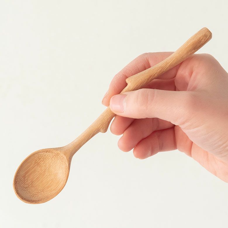枝をイメージしたデザインの持ち手が目を惹く、天然木(ドウシェ)のカトラリー。